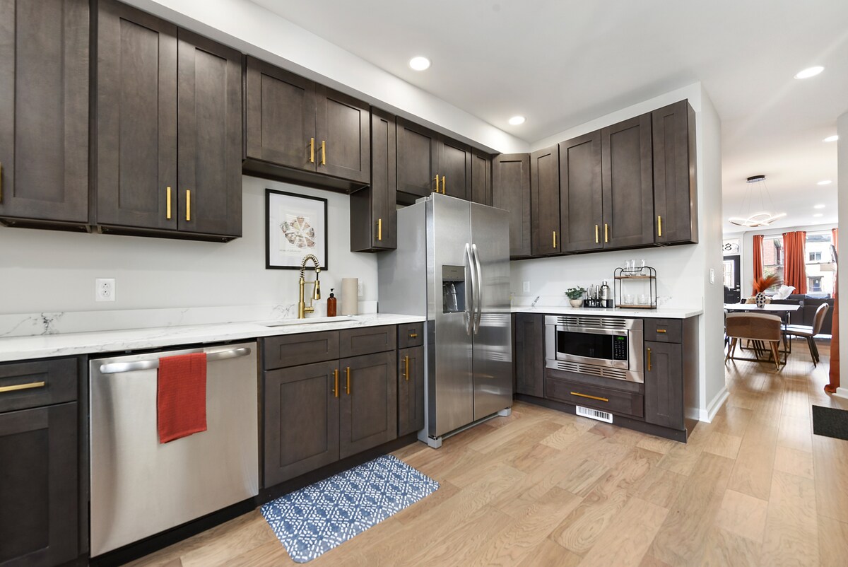 Historic row house located on a quiet street in Deutschtown, this home is close to everything! A short walk to Starbucks, boutique shops, restaurants, parks, & more! 7 min drive to PPG arena. 5 min drive to PNC Park, Convention Center, & Acrisure Stadium! Enjoy a view of the downtown skyline from a rooftop deck & balcony off the master (infrared heater for cold nights). Savor your stay w/our well stocked coffee bars, high quality beds/linens, & option for no check-out instructions.