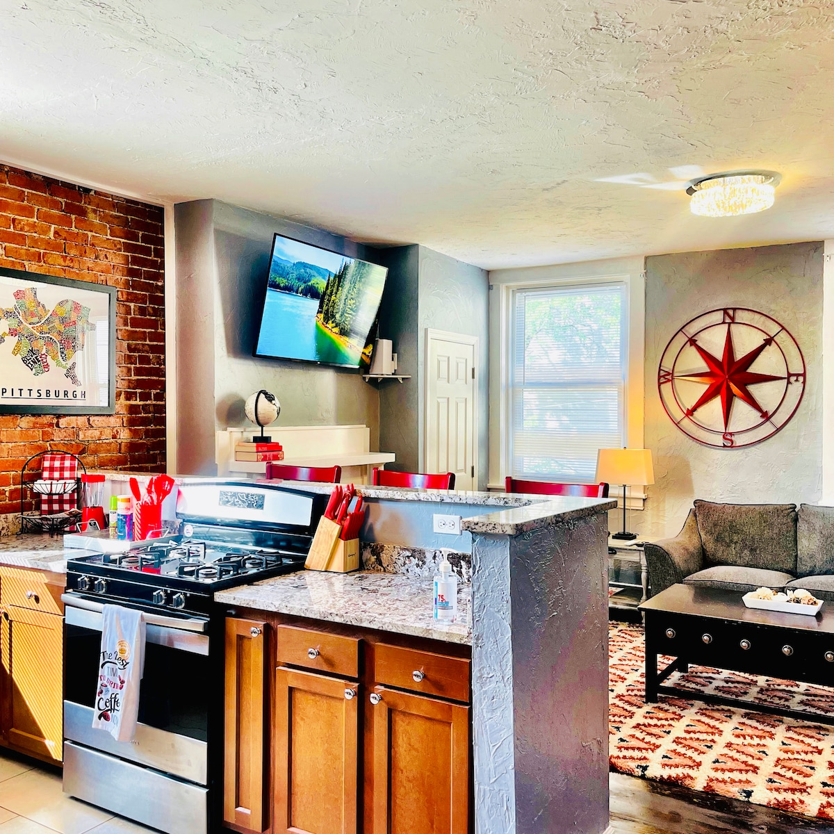 Beautifully decorated, spacious 2BR in PRIME walkable location! 🚶Distances: • Acrisure Stadium – 1.3 mi • PNC Park – 0.8 mi • Downtown – 1.2 mi • AGH – 0.1 mi • Rivers Casino – 1.5 mi • Science Center – 1.5 mi • Children’s Museum – 0.5 mi • Stage AE – 1.3 mi • Aviary – 0.6 mi • Warhol Museum – 0.7 mi • Refucilo Winery – 1.0 mi • Randyland – 0.6 mi • Federal Galley – 0.6 mi • Starbucks/Yinz – 0.3 mi • Legends Eatery – 229 ft