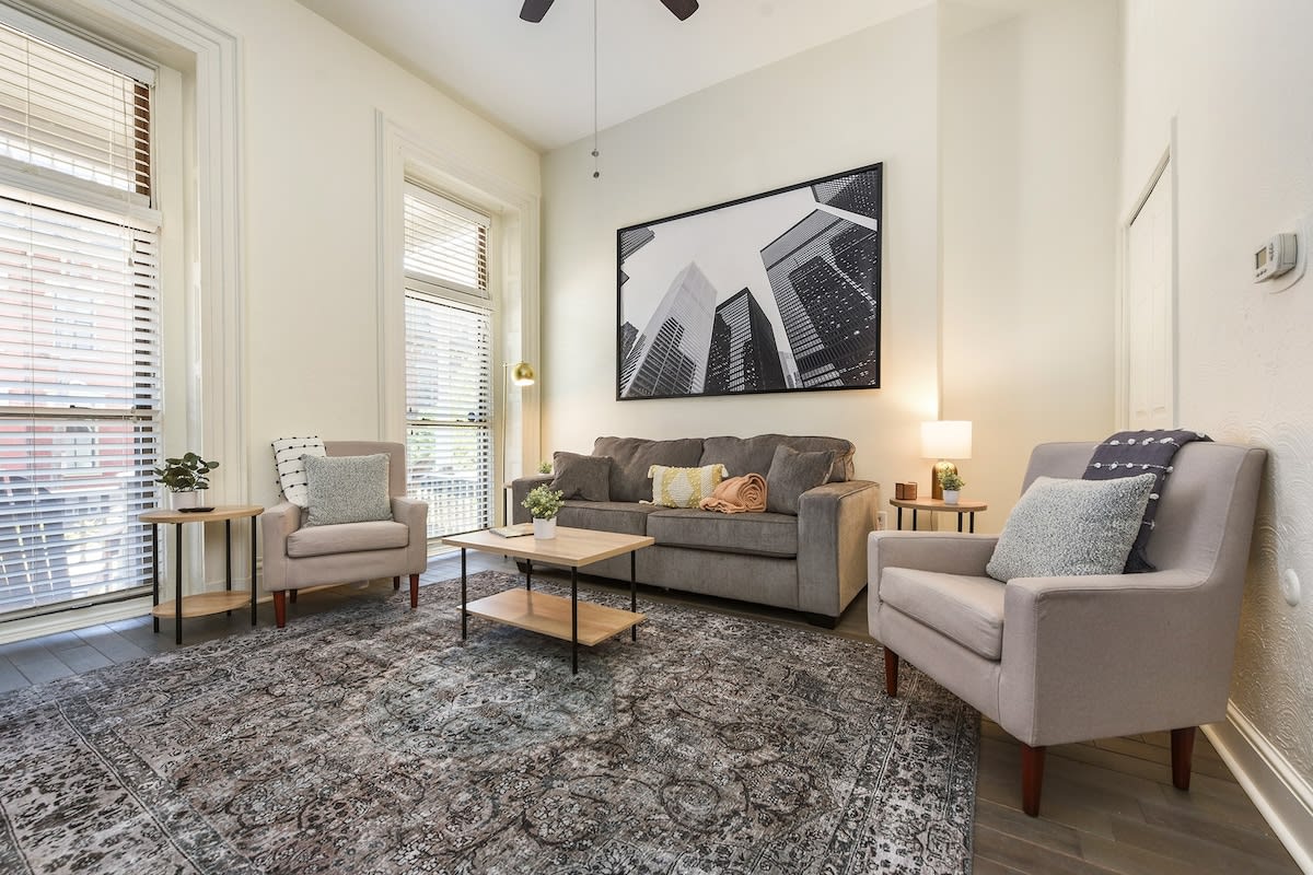Located right in the heart of Lawrenceville on Butler St., you can't beat this location! Our 1st floor apartment is tastefully furnished and stocked for short term and longer term stays - perfect for living and working, or quick getaways! Our well appointed kitchen is great for cooking, our two desks are perfect for two work from home travelers, our cozy bedroom invites you to sleep in, and the living room's couch and smart TV invite you to relax!