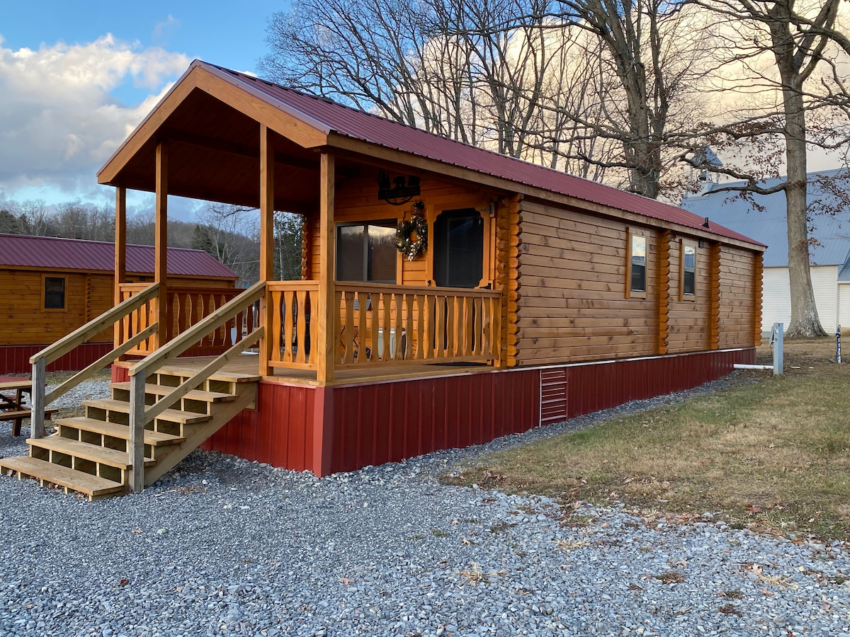 New cabin built 2019 in the heart of pocahontas county! Just a 28 mile drive to Snowshoe ski resort. It has a bedroom downstairs with a queen bed, upstairs bedroom has a full bed with open loft overlooking kitchen and living room area, bathroom downstairs with standup shower. It has a heat pump, two TVs & WIFI also a fully equipped kitchen. We have a fire pit outside and a charcoal grill. The 77 mile greenbrier river trail is directly in front of our cabin.