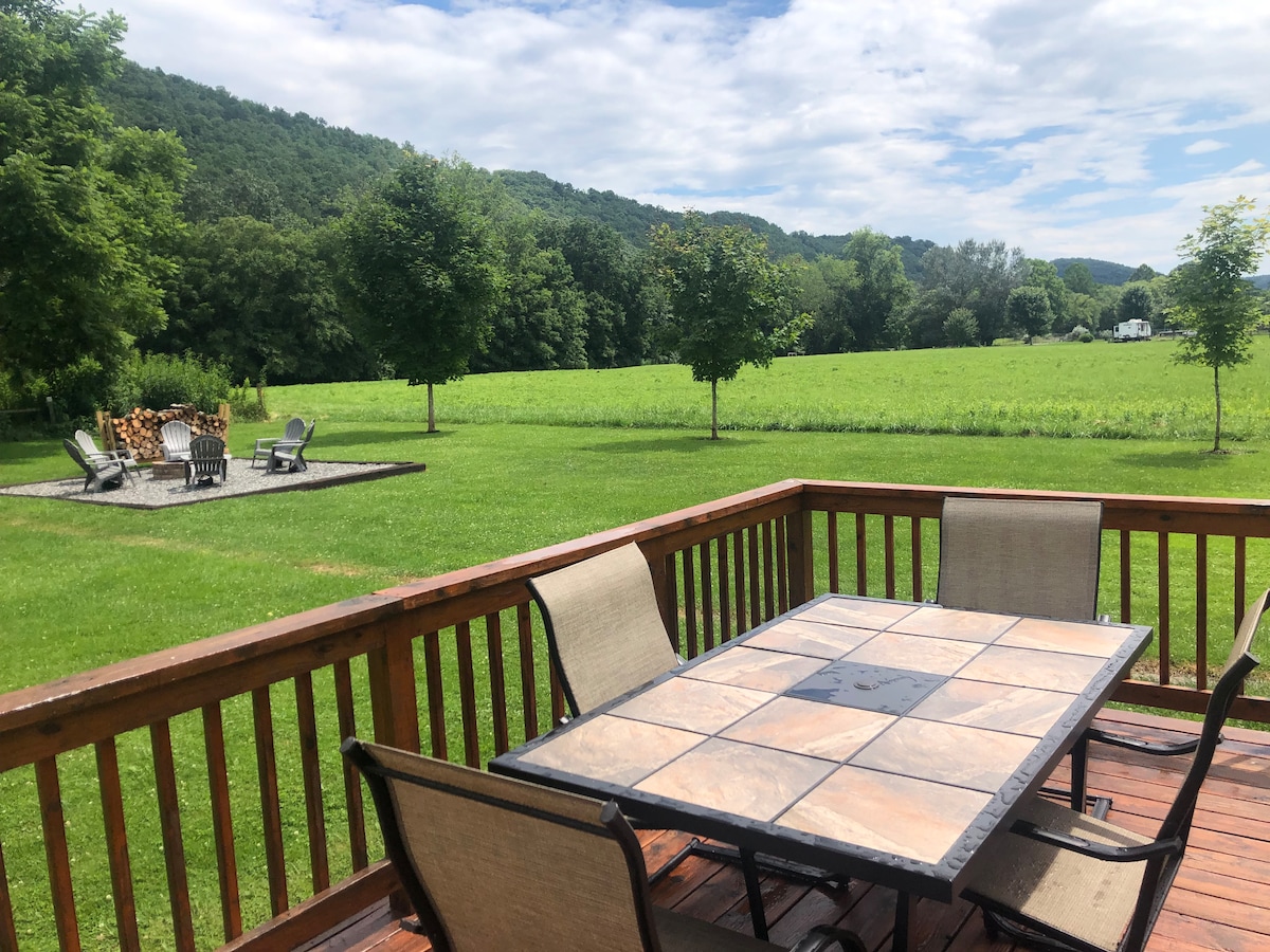 Located in the pristine Mill Gap Valley. At night you can reach out and touch the stars. National Forrest is close by too. Enjoy the peace and tranquility that can only be offered in Highland county. The farm along with our Maple Syrup is certified Organic. From our apple trees to our hay and pastures. We are Organic! If you would like a tour of our farm or maple operation, let us know! By September 2020, there will be a new outdoor living area with a hot tub and dining.