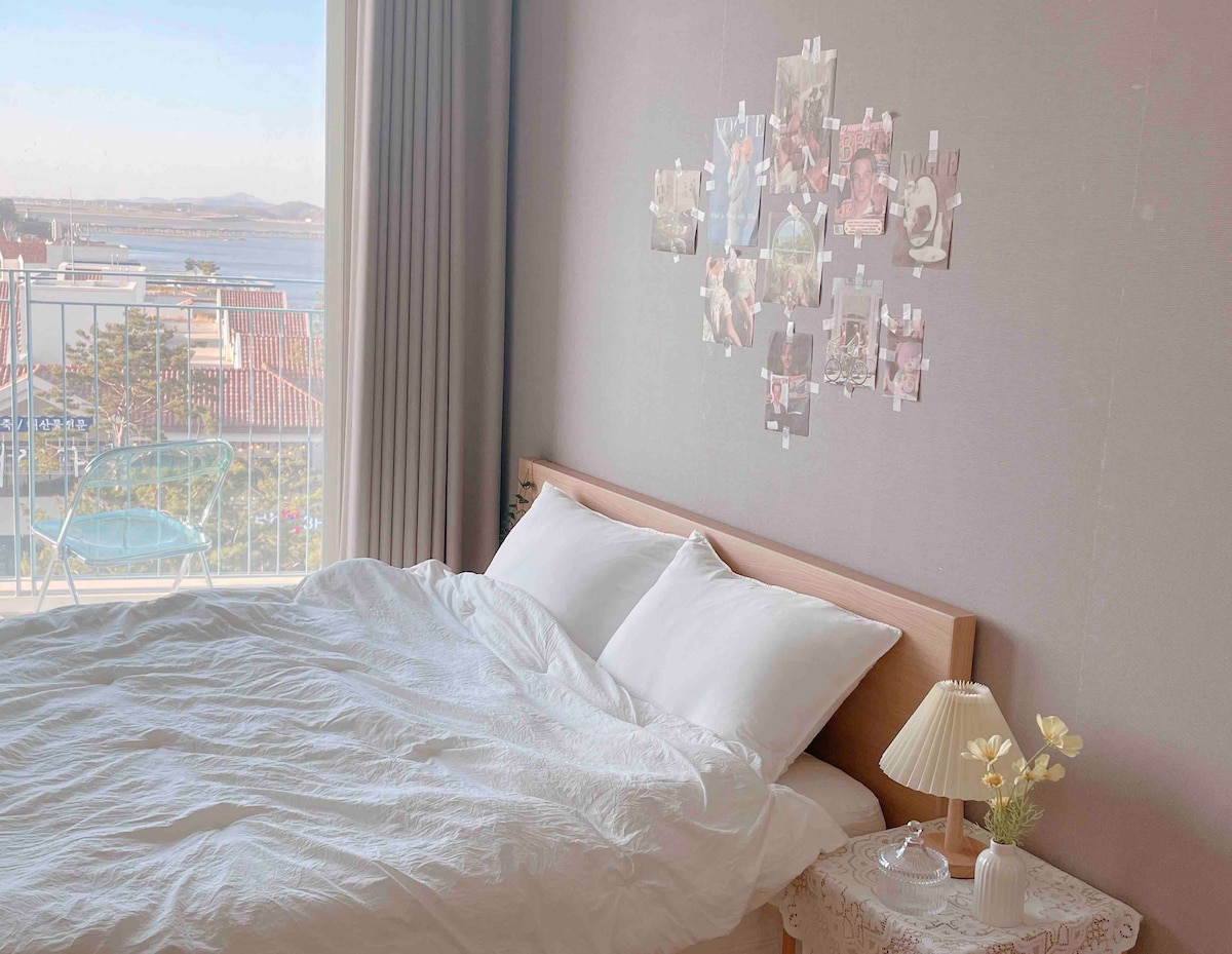 체크인 4:00 pm - 체크아웃 1:00 pm ♥︎ 침실 - 매일 세탁하는 알러지 케어 호텔 침구 - 65인치 안드로이드 TV , 케이블 채널 - 디즈니, 티빙 시청 가능 - 5.0ch JBL 사운드바로 영화관 같은 사운드 - 스탠드 조명, 무드등으로 카페 분위기 ♥︎ 주방 - 넓은 다이닝 테이블 - 취사 가능 - 와인잔, 소주잔, 오프너 - 커피잔, 식기류, 조리도구 - 일리 커피 머신 (커피 캡슐 2개 제공) - 소금, 후추 ♥︎ 테라스 - 잔잔한 사운드의 라이트닝 스피커 - 바다를 바로 볼 수 있는 전체 오션뷰 테라스 ♥︎ 욕실 - 샴푸, 컨디셔너, 바디워시 등 ♥︎ 지하주차장(무료) ♥︎ 얼리 체크인, 레이트 체크아웃 (사전문의)