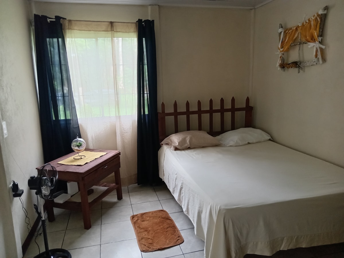 Apartamento tipo estudio con entrada independiente, baño privado, 2 camas individuales y la posibilidad de colocar un colchón de aire adicional. Ubicado en una zona llena de naturaleza , hermosos paisajes, cataratas y ríos. Por su ubicación es el lugar ideal de descanso si viene o va para las playas del Caribe, Tortuguero, si se dirige a la zona de la Fortuna, Volcán Arenal. El apartamento es pequeño ideal para un máximo de 3 personas, contamos con piscina ecológica de agua 100% natural.