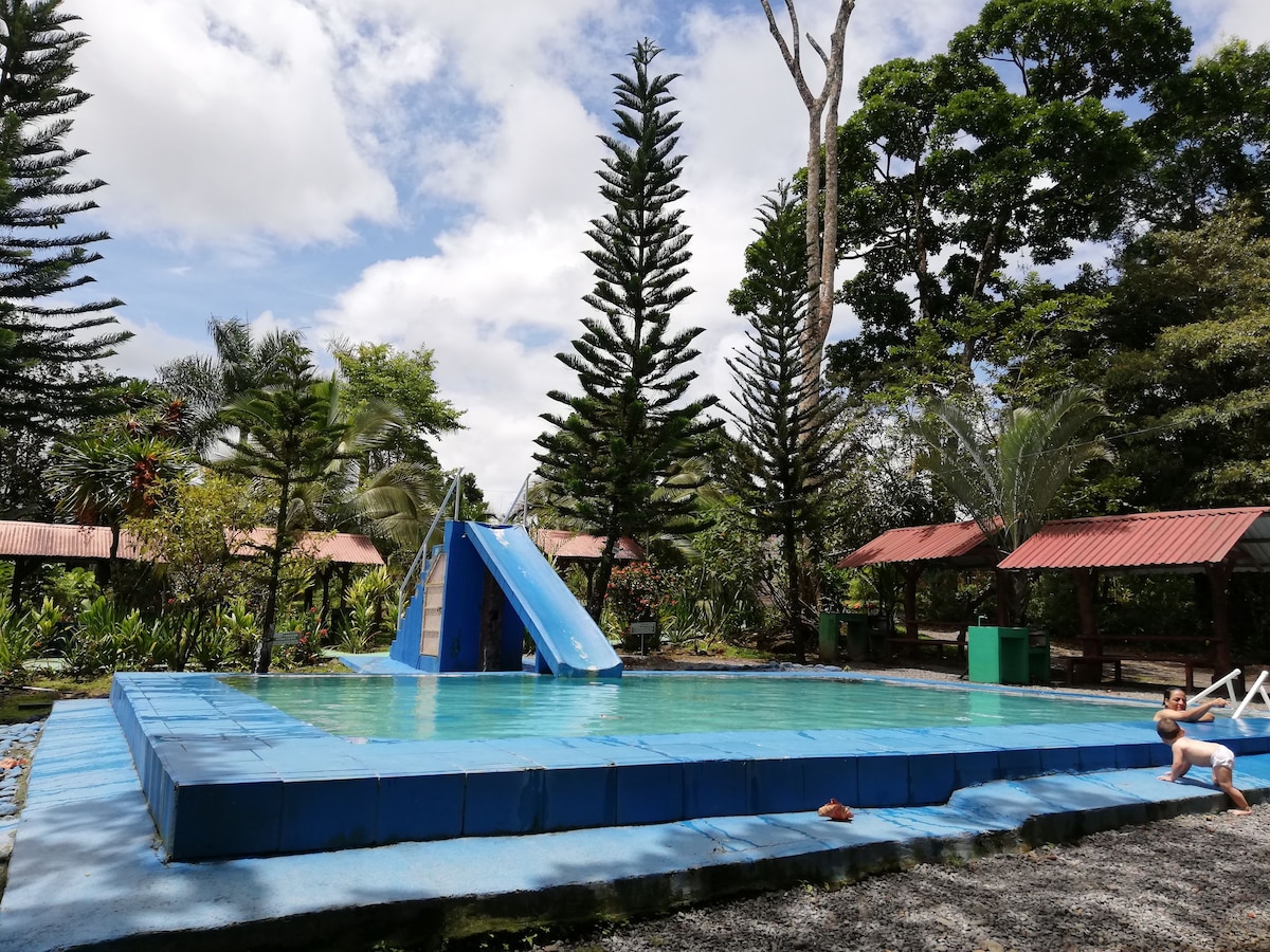 Cabina equipada en Guápiles con piscinas.