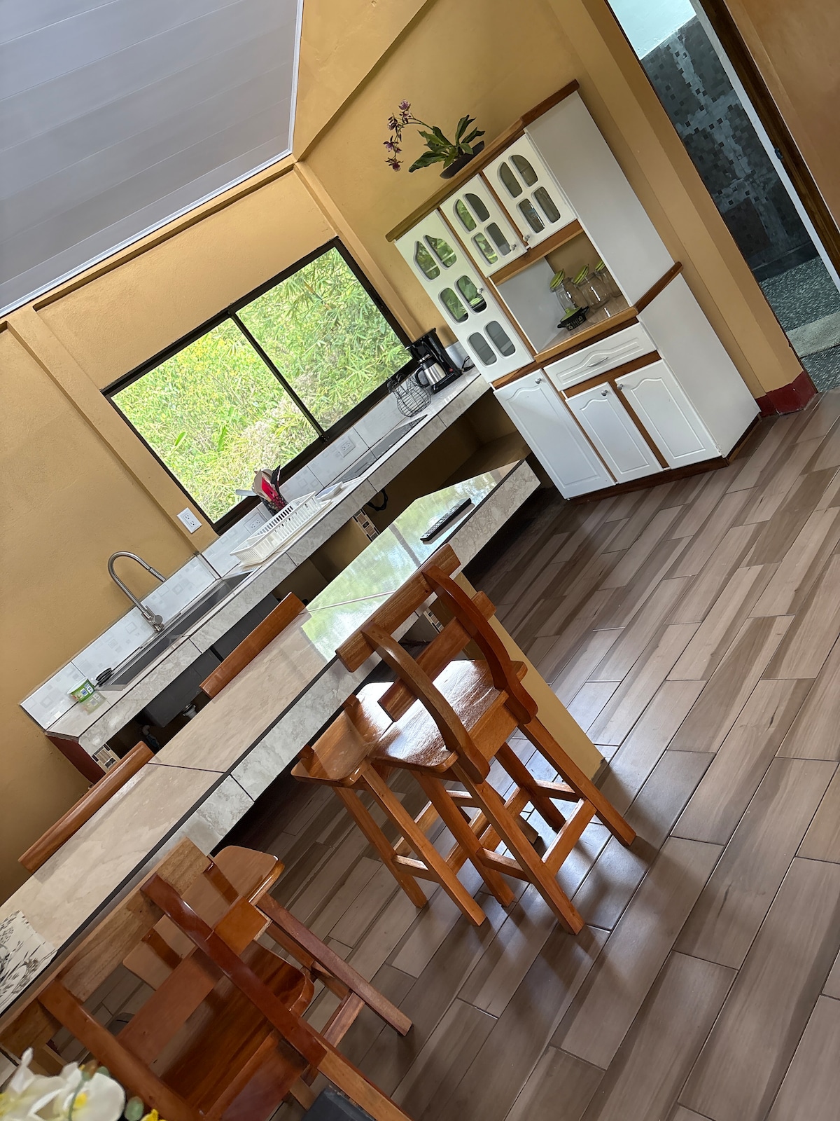 Just 5 minutes from downtown Guápiles, Caribe Loft #1, offers space for 4 people in a modern and elegant setting. The loft features a fully equipped kitchen, a comfortable living room, laundry service parking for a small vehicle, and two bedrooms. With high-speed Wi-Fi and air conditioning, it’s ideal for relaxing after exploring the city or the Costa Rican Caribbean. Close to shops, restaurants, and services, it’s the perfect starting point for your stay.