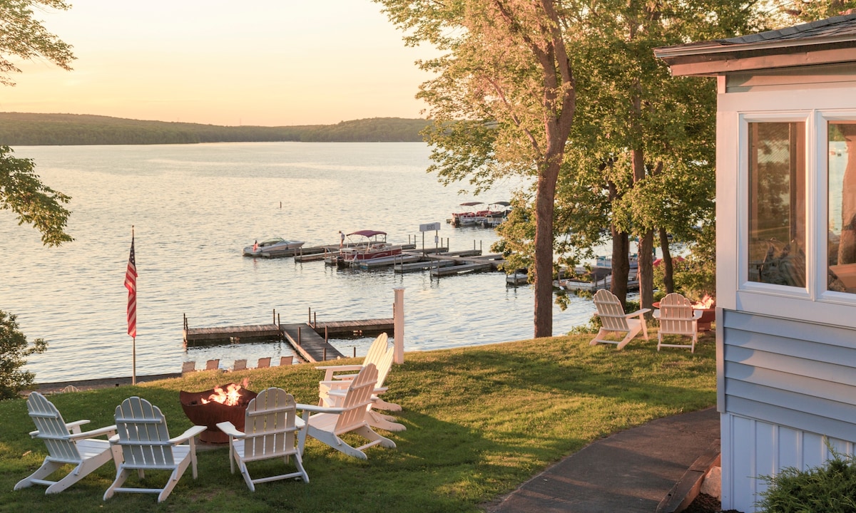 Situated on the water's edge of Arrowhead Lake, this brand new, custom built home offers a unique, luxury getaway for those seeking a stay with all that lakefront living has to offer. Perfectly set up for a romantic getaway for two, The Lakehouse on Arrowhead was created to provide a space for couples to rest and reconnect while enjoying gorgeous lake views from both inside and out. The spacious deck is just steps from your own private dock which allows you to kayak at your leisure.