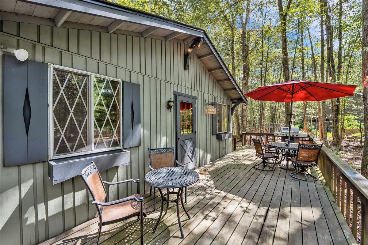 Locust Lake Village | Hot Tub | Game Room | Lake & Beach Access Escape to serenity and adventure at this 3-bedroom, 1.5-bath chalet in Locust Lake Village! Nestled among the trees, this charming cabin offers lake access and sandy beaches in the community—perfect for swimming and kayaking Spacious deck for family BBQs with foliage views. Cozy living space with a fireplace for chilly nights. Hot tub under the stars and a fire pit for unforgettable s’mores nights!