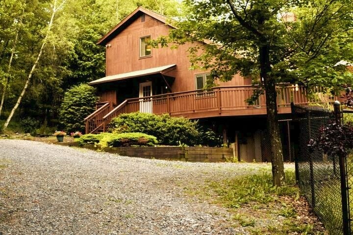 A stunning chalet ideally situated in the Pocono mountains. Your destination for a weekend escape or a longer stay all year round! Outside one can enjoy a natural setting in a beautiful 1-acre private wooded property, hot tub, two fire pits, a deck for morning coffee, or a delicious BBQ. Our home offers a tranquil interior atmosphere and home is conveniently located near all Pocono Mountains' seasonal activities. Whether you want to unwind or recharge, our home provides the perfect retreat.