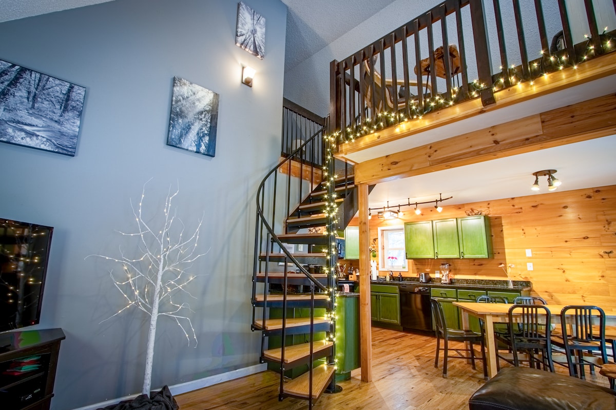 大巴斯湖(Big Bass Lake)的山间度假屋-热水浴缸
