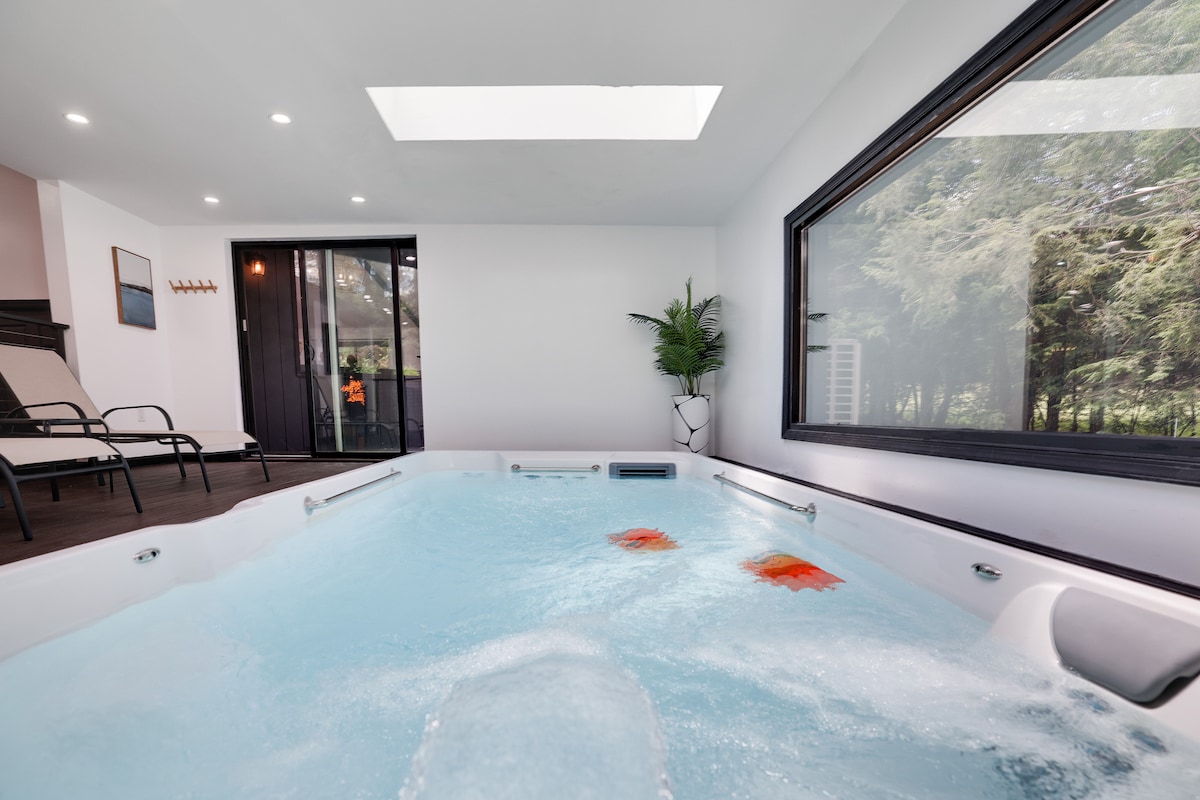 Book now and experience the magic of Lux Cabaña, a retreat designed for unforgettable group getaways in the Mt. Pocono mountains. Indoors enjoy a cozy fireplace living room, chef-ready kitchen, stylish bedrooms, indoor sauna + hot tub, game room, and gym. Outdoors glow-in-the-dark mini golf, outdoor movie theater under the stars, outdoor Sauna and a fire-pie. Minutes from skiing, hiking trails, lakes and city attractions. Perfect for family gatherings, birthdays and friends’ weekends.