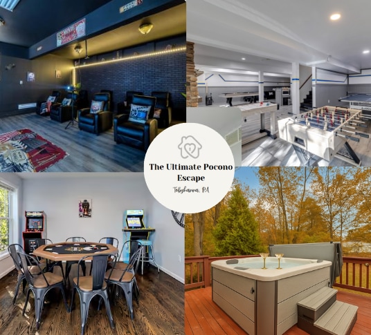 平均评分 4.98 分(满分 5 分),共 91 条评价波科诺现代度假胜地:剧院、热水浴缸、游戏室