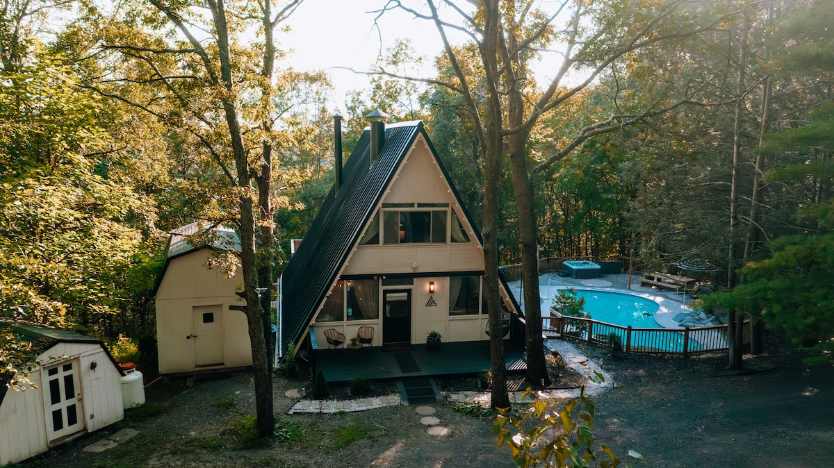This is a three floors gorgeous A FRAME HOUSE designed for anybody who loves nature, luxury homes, and privacy, with an amazing interior design cozy and modern. Is a private space for friends and families. During your visit you will have work space, pool, hot tub, pool table, game room, tv room, outdoor fire pit, indoor fireplace, back porch with an amazing view, modern kitchen, and cozy corners all around the house, It’s the perfect vacation rental home that you will never want to leave!