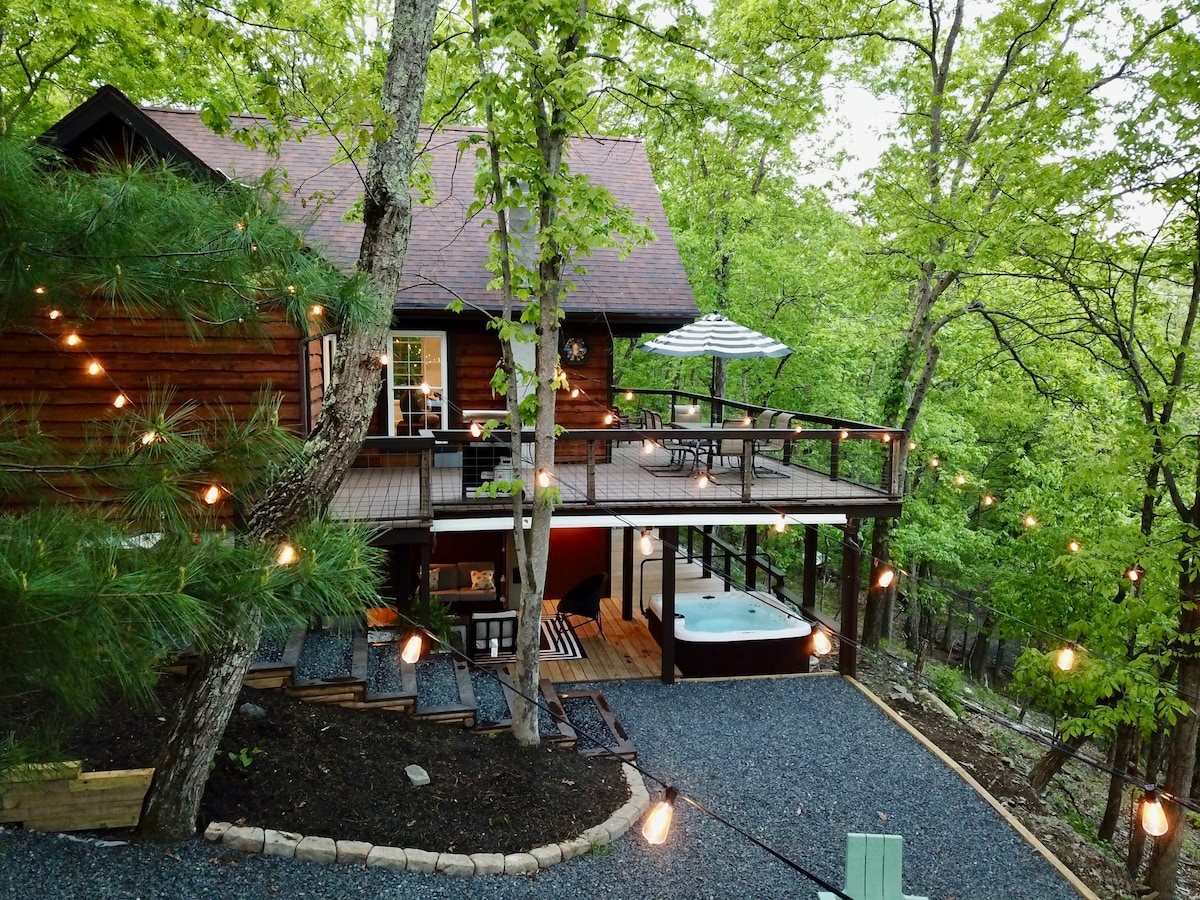 The perfect escape from city life. Up winding mountain roads you'll land at your private cabin just a walk away from the beautiful lake. Enjoy our private hot tub or sit outside on our expansive deck & watch the wildlife. Gather around the firepit to make s'mores while you watch the sun set behind the mountain. If you're looking to be more active, there is a fitness center, tennis courts, & swimming all within our safe and peaceful gated community.