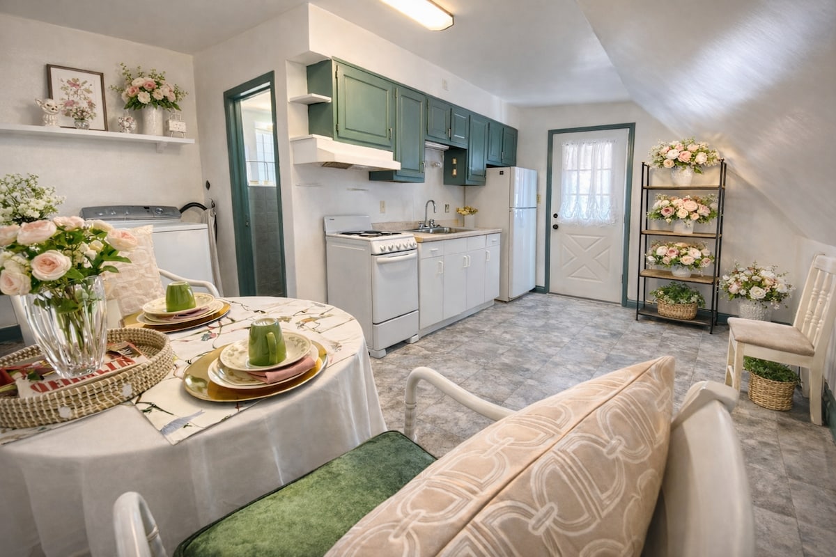 舒适的农场公寓小厨房,可供4人入住,标准双人床沙发