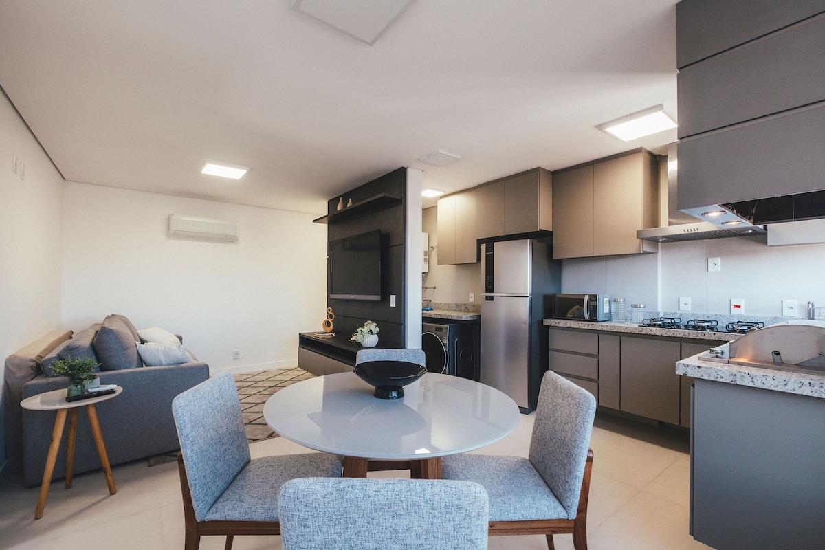 Studio completo com academia área pra churrasco sala cinema lavanderia com lava e seca e sala de reuniões. Tudo bem pertinho supermercado barzinhos, padaria,pizzaria farmácia ,posto de gasolina salões de beleza e restaurante. você pode se locomover a pé tranquilamente pelo centro sem precisar de carro.