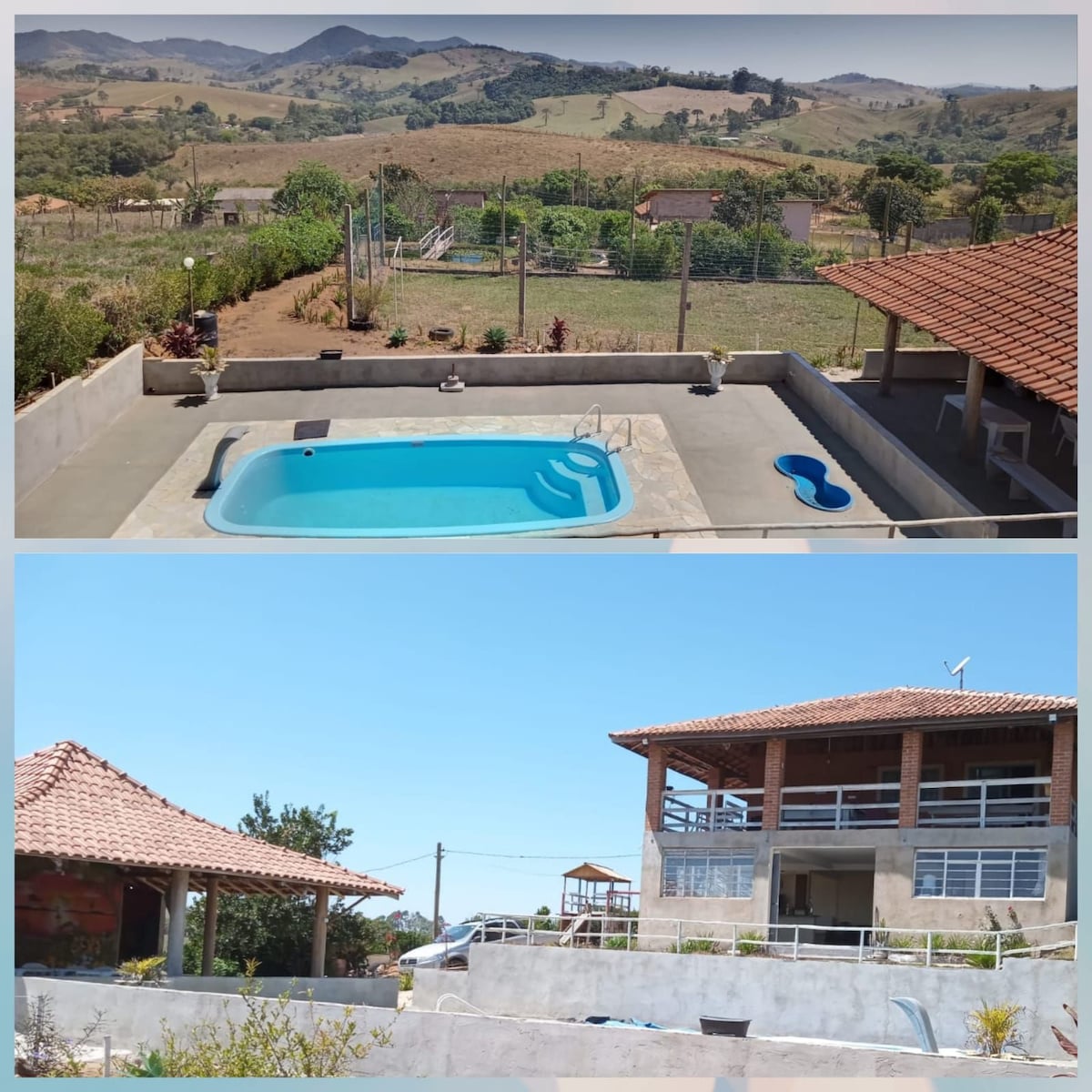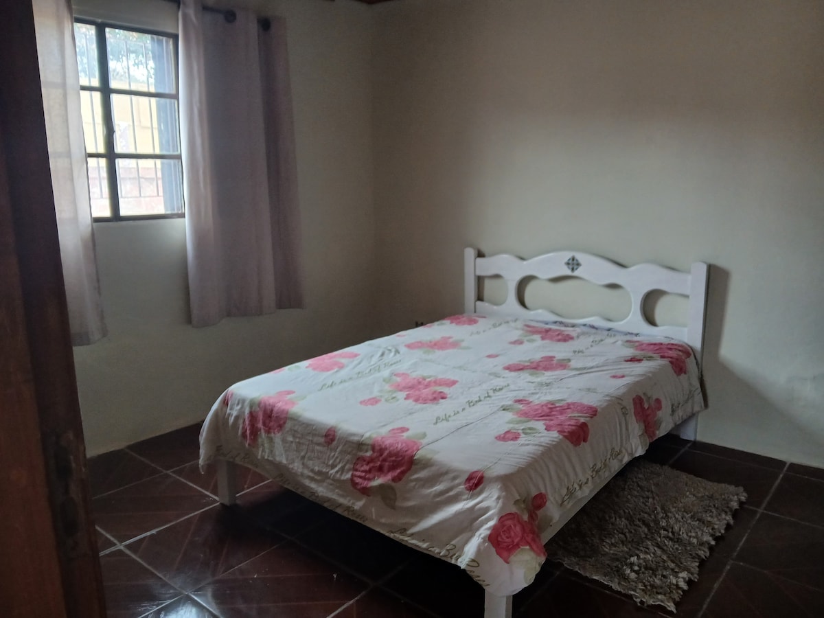 PRICES ARE FOR ACCOMMODATION ONLY. CONTACT US FOR EVENTS (OVER 20 PEOPLE). There are over 200,000 m2 of space with a pond, the Dona Flor Fountain, a basketball court, a soccer field, a slide, seesaws, a sand pool, a grass sled track, trails to the top of the mountain with viewpoints, as well as a party room with another kitchen, barbecue area and wood-fired pizza oven. The house can accommodate up to 8 people. We are right on the edge of the ancient volcano. Search for our posts on media