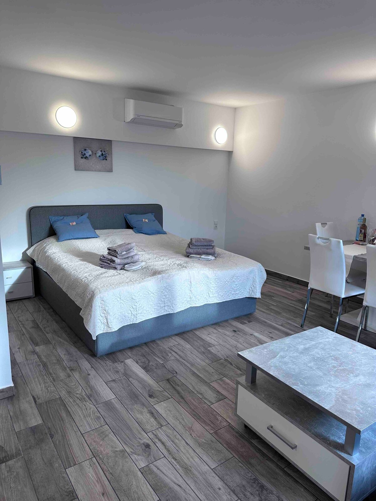 Entspann dich in dieser besonderen und sehr ruhigen Unterkunft. Das Apartment befindet sich im hinteren Teil eines Hotels. Es hat einen separaten Eingang und einen eigenen Parkplatz mit E-Ladestationen. Natürlich mit Klimaanlage, kleiner Küche, Dusche und WC. Die Wohnung ist über eine Treppe im 1. Stock erreichbar.
