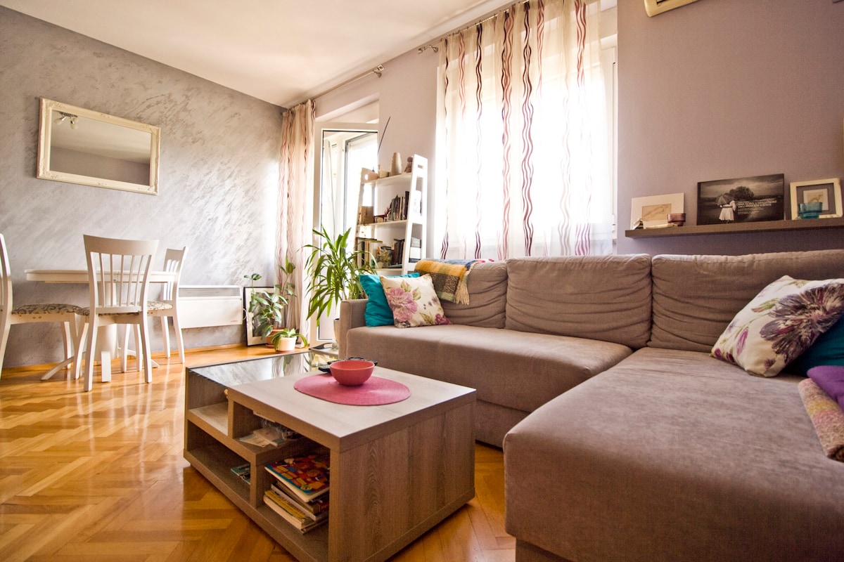 Whether you are staying in Podgorica for business or pleasure, our apartment is fully fitted with every amenity to make your stay extremely comfortable. This cozy apartment is situated on the ground floor in the city center. It's in a side street, so it is quiet at nights. All the bars, supermarkets, restaurants, cafes, pharmacies, bakeries are 2 minutes walk from the apartment. This apartment features colourful patterns, abundant natural light from the balcony windows.