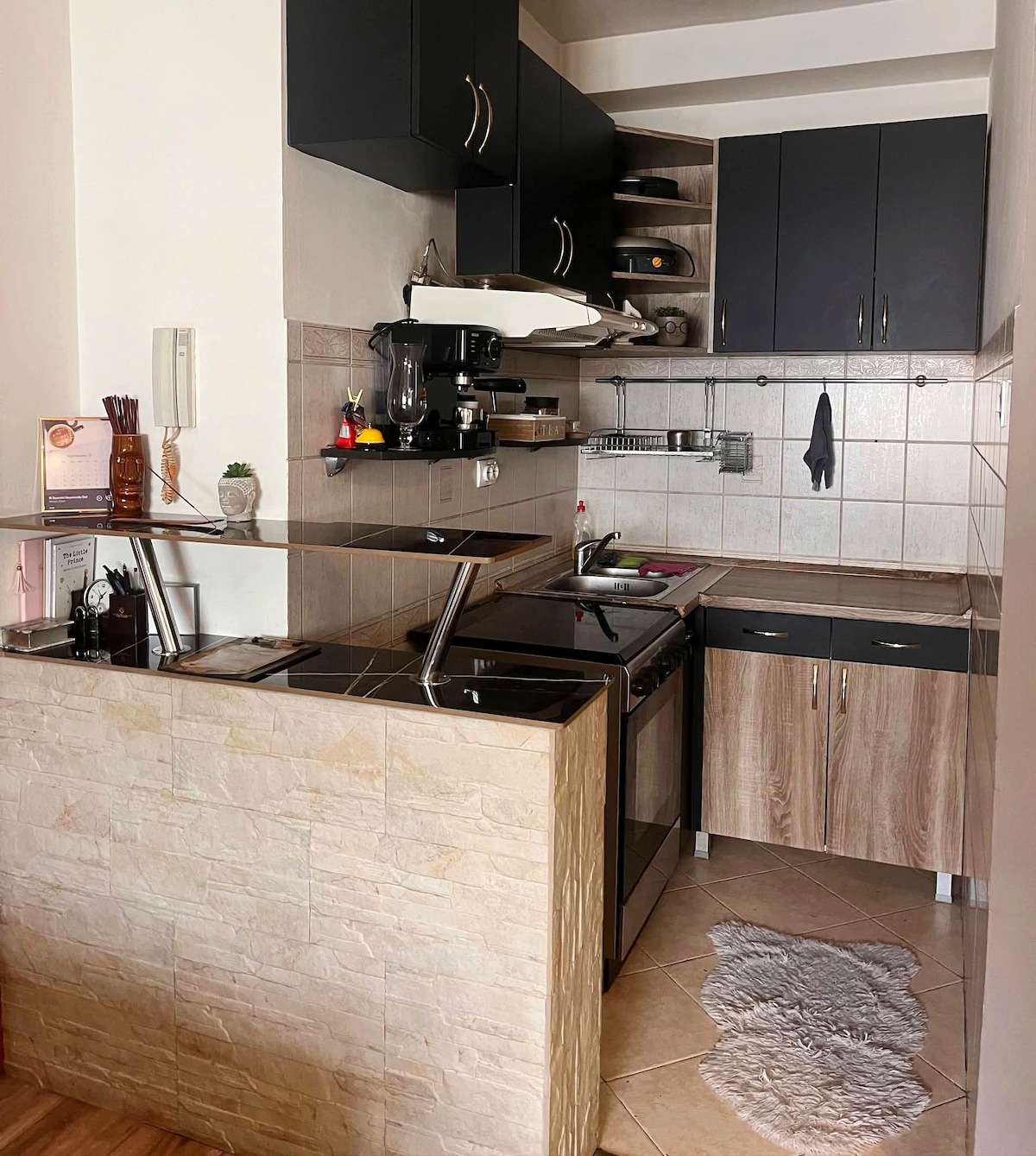 Udoban i potpuno opremljen stan u samom centru Podgorice, idealan za odmor, poslovni boravak ili rad na daljinu. Stan odiše retro-industrijskim stilom, sa savršeno opremljenom kuhinjom i prijatnim velikim dnevnim boravkom za opuštanje. Balkon pruža pogled na zelenilo i mirno okruženje, a gostima je na raspolaganju besplatan parking iza zgrade. Savršen izbor za one koji žele komfor, dobru lokaciju i osjećaj doma.