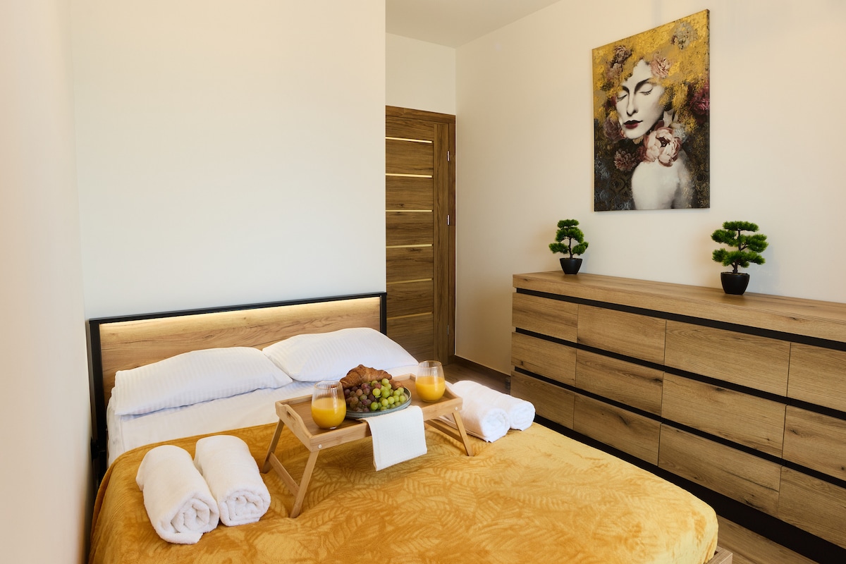 Nowoczesny i wygodnie urządzony apartament o powierzchni 50m2 zlokalizowany na 6 piętrze w 6-cio kondygnacyjnym budynku z windą na osiedlu Tarasy nad Zalewem w Rzeszowie. Składa się z: - sypialni z łóżkiem dwuosobowym typu double bad - pokoju z kanapą dwuosobową rozkładaną - pokoju dziennego połączonego z kuchnią - łazienki z wanną i prysznicem - holu oraz dużego tarasu z widokiem na miasto, zalew oraz zaporę na Moście Karpackim. Apartament jest w pełni wyposażony, posiada klimatyzację.