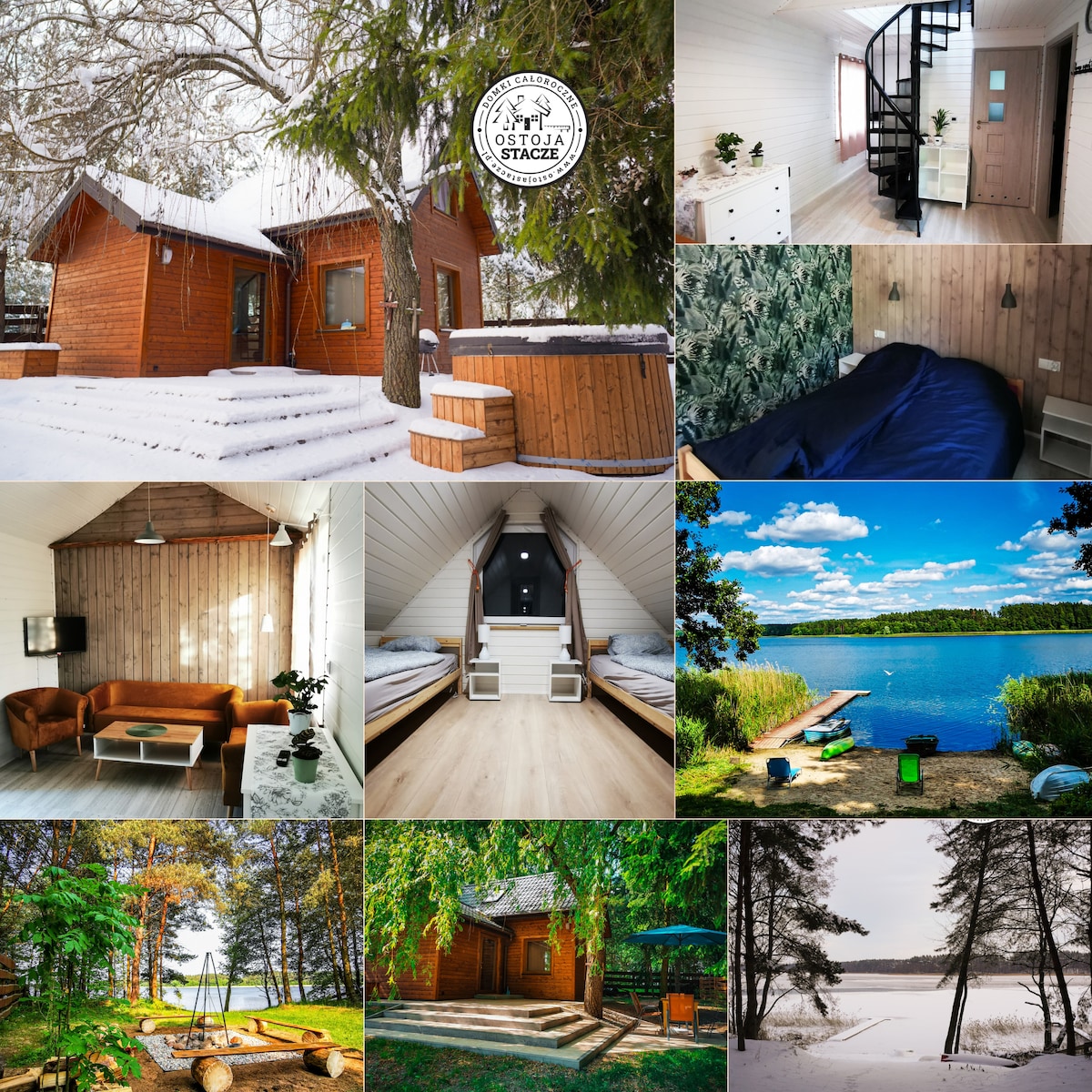 Domek drewniany w stylu skandynawskim, prosty i funkcjonalny, położony na wyspie otoczony stawem. Miejsce bardzo ciche i spokojne z dala od zgiełku. Dodatkową atrakcją jest hodowla Danieli które swobodnie poruszają się po obiekcie ( można pokarmić marchewką :). Domek ogrzewany kominkiem. Możliwość rezerwacji prywatnie. Posiadamy też kuchnie w sezonie letnim która serwuje wyśmienite posiłki!