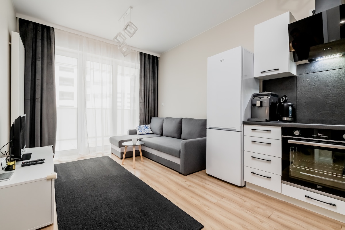 Nowoczesny apartament 2-pokojowy znajdujący się w prestiżowym wieżowcu w samym sercu miasta. W pobliżu jest galeria handlowa, basen, kino, siłownia, liczna gastronomia Mieszkanie jest w pełni wyposażone i gotowe na Twój przyjazd – znajdziesz tu komfortowe łóżko, rozkładaną sofę, aneks kuchenny z pełnym wyposażeniem, ekspres do kawy, telewizor z tv naziemną oraz Wi-Fi To idealne miejsce zarówno na krótki wypad, jak i dłuższy pobyt-dla par, rodzin, osób podróżujących służbowo czy turystycznie.