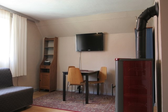 Samodzielne niewielkie lecz przytulne studio blisko centrum, portu, parku, przy drodze na plażę. Na poddaszu przedwojennej kamienicy. Wyposażone w 2 rozkładane dwuosobowe sofy, stół, aneks kuchenny, łazienkę z prysznicem, stryszek do przechowywania bagaży. Idealne dla par, choć może pomieścić grupkę znajomych, max cztery osoby. Wiosną, zima, jesienią ogrzewanie piecykiem akumulacyjnym. Kuchnia i łazienka nie są ogrzewane. Na wyposażeniu są 2 rowery.