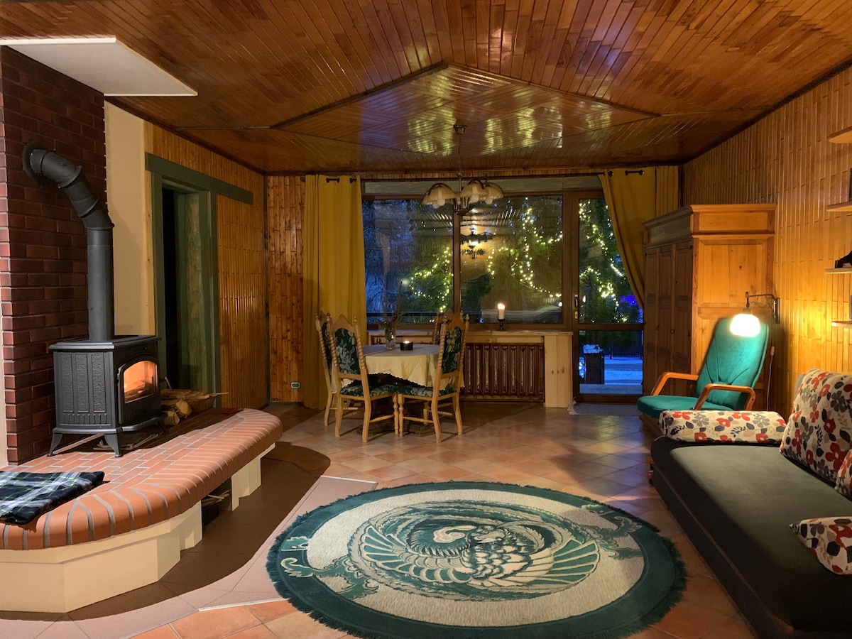 Apartament 2-pokojowy (60m kw.) z łazienką, z własnym aneksem kuchennym, lodówką. W Pokoju kominek, TV LCD 42 cale , polskie kanały cyfrowej tv naziemnej, WiFi, wyjście na 2 balkony z każdego pokoju i bezpośrednie zejście do ogrodu.