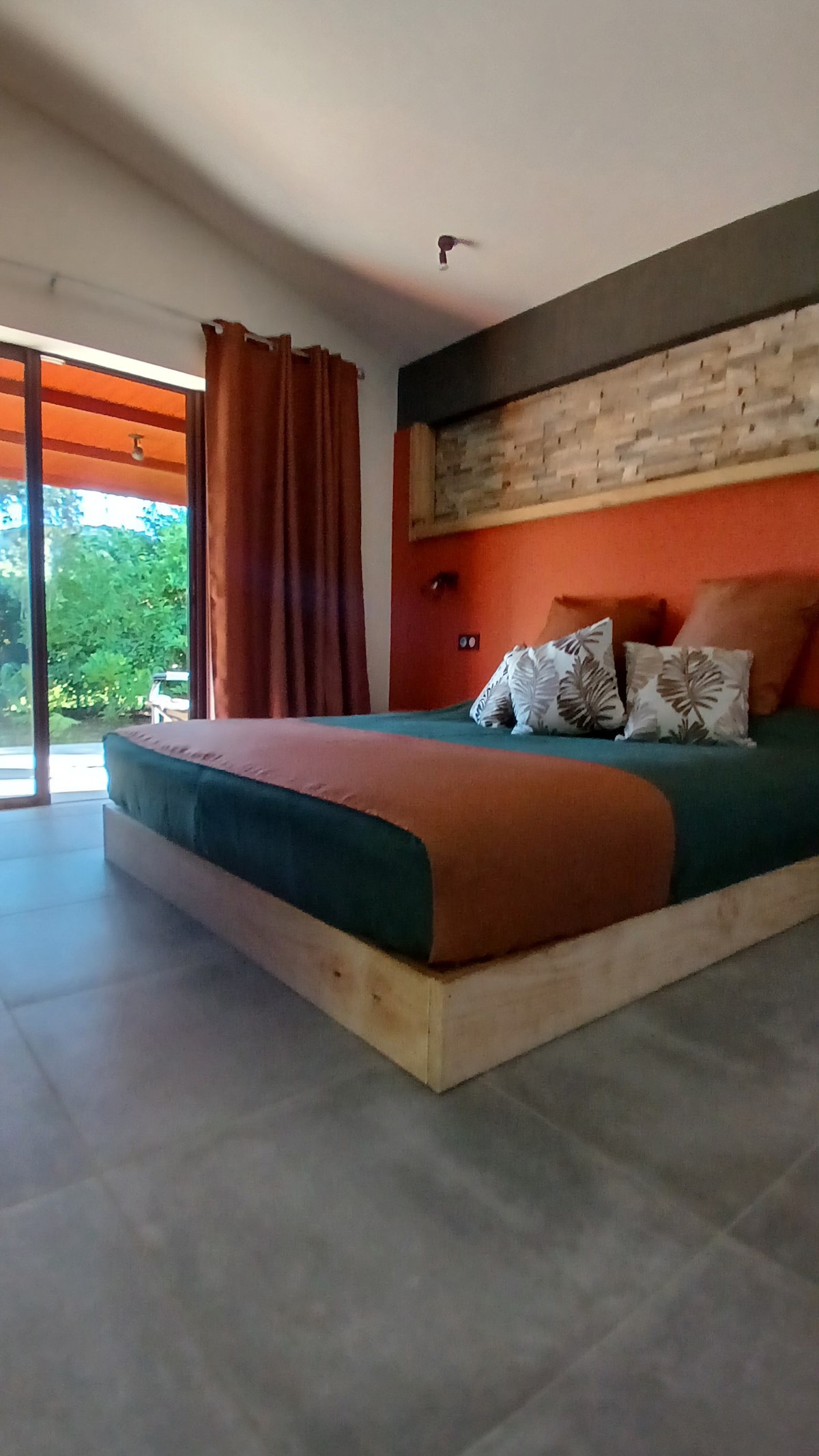 A stone's throw from the Grandes Fougères park, in the exceptional site of the Oasis of Tendéa, your luxurious bungalow "Le Niaouli" awaits you for a wonderful moment of relaxation. In this little paradise, come and enjoy the comfort of your bungalow with its “Balinese” atmosphere, its terrace with breathtaking views of the lush forest of Tendéa, its garden with multiple species, swimming in the river with its superb waterfall including access is private for Nirvana guests.