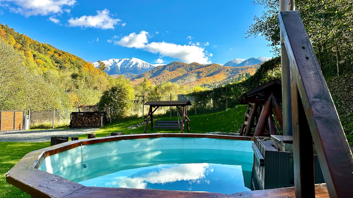 Located near the forest, on the main road to the Negoiu Peak, the second largest mountain in Romania, this little tiny-house style chalet is the best option for a cozy romantic retreat in nature. Inside, you will find brand new luxurious furniture and utilities. The large windows will flood your living space with natural light and the curtains will provide enough shade in case you don`t like the light. Outside, there is a fireplace from which you can admire the peaks of the mountains.