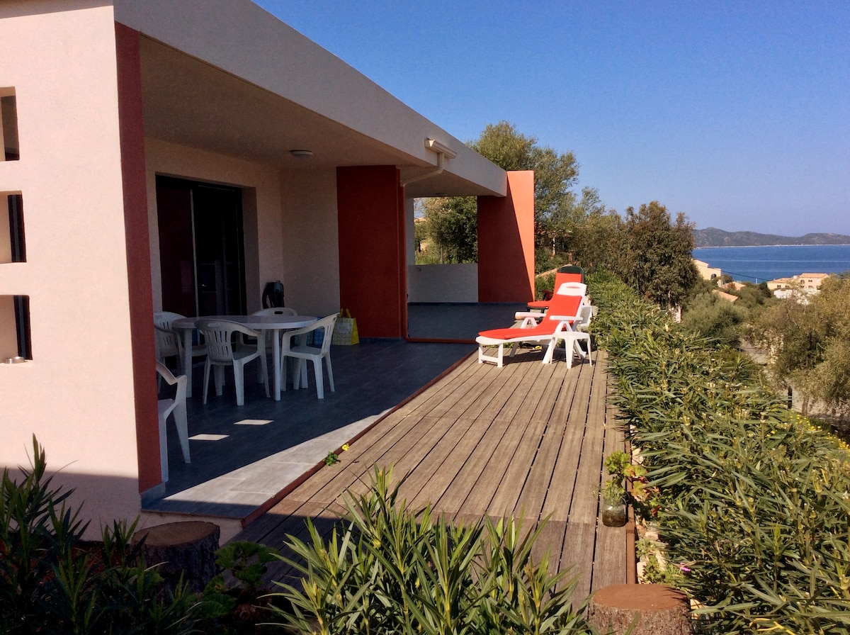 On the heights of Saint-Florent, under eucalyptus and umbrella pines, with a fantastic view over the bay. A 3 bedroom, 2 bathrooms apartment opened on a terrace on the bay. Very quiet and zen environment with non smoking in the apartment and on the terrace. For 4 personnes and 3 children. No smoking area inside the apartment and in the terraces.