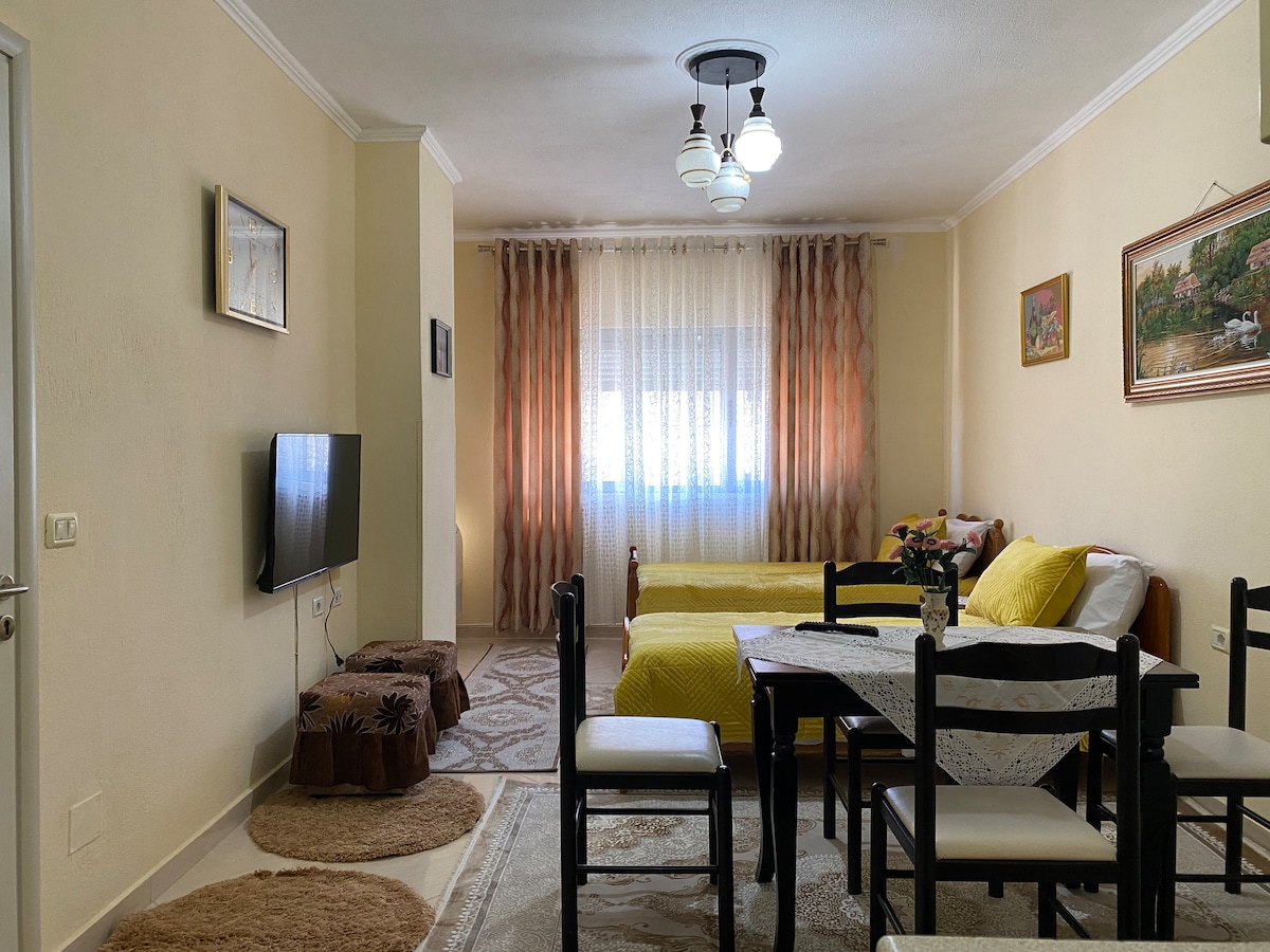 Our place is a cosy, brand new and fully furnished apartment with all the facilities needed for a nice, quiet and comfortable stay. Situated in one of the nicest areas of Pogradec,just 3 minutes walking from the lake, the gardens of Pogradec , and the main promenade where most of the bars and restaurants are. Just a drive away you can enjoy the park of Drilon and the characteristic village of Tushemisht. During your stay at our appartement you will feel just like at home!