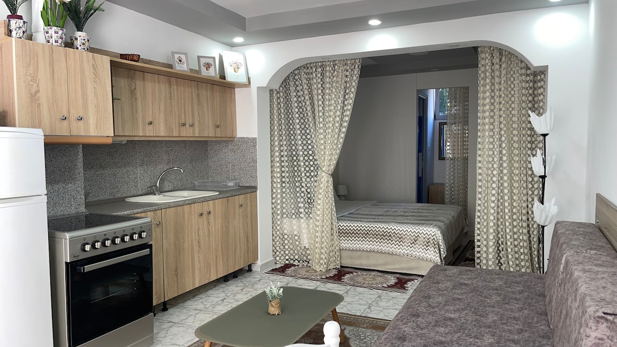 Welcome to Lovely apartment in Pogradec city! Whether you come to town for business or visiting and you need a comfy place to stay, we’re happy to share our newly refurbished apartment, complete with its own living/dining room, kitchen, bedroom and bathroom. There is free parking in the street near the apartment. Enjoy a unique getaway in this comfy apartment Lake front perfect for a couple or a small family and relax to the sounds of lake and birds. Feel the nature!