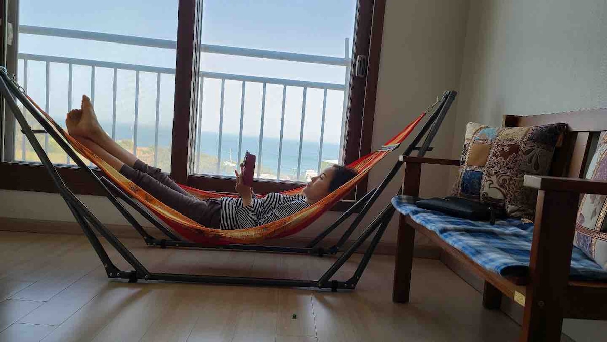 🌊오로지 뷰 하나로 준비한 공간입니다. 시원한 뷰와 함께 지친 마음에 휴식을 가져보세요~ 핫한 카페와 포항 주요 명소들이 즐비하는 구룡포에 위치하고 있어 포항의 색다른 매력에 빠지기 딱입니다! 1. 집안에서 일출 감상이 가능합니다. ( 집안 보다 옥상이 더 대박. 일출맛집 🌅 ) 2. 도보 1분 거리에 '구룡포 시립 도서관'이 있어 독서를 즐기거나 책육아 하시는 분들께 딱 입니다. (feat.오션뷰 도서관&운동장🌊) 3. 일본인 가옥거리, 구룡포해수욕장 등이 차량 5분거리에 있어 인생샷을 건지기에 안성맞춤입니다. 포항의 명소인 호미곶해맞이광장도 차랑 15분✋️ 4. 그냥 오션뷰가 아니라 항구뷰이기 때문에 낮에는 푸른 바다를 감상할 수 있고 밤에는 아름다운 야경🌃을 감상할 수 있습니다. 5. 물회, 대게🦀, 과메기 등 포항의 유명 맛집들이 근처에 넘쳐 납니다. 6. 한적하고 여유를 느끼기에 최적입니다. 맑은 공기마시며 마음의 여유를 느껴보세요!🍀