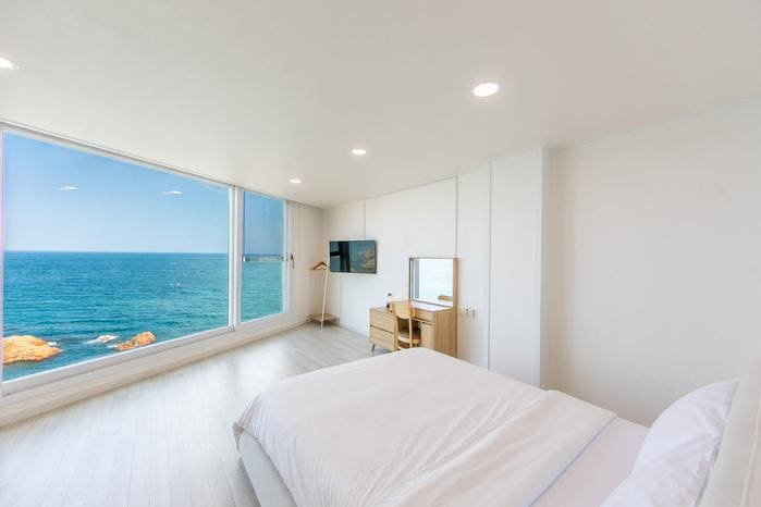 이 독특한 숙소는 개성 넘치는 스타일을 자랑합니다. 침실에서 일출과 일몰을 자쿠지(사용료무료)에서 일출과 일몰을 펜션에서 힐링되는 파도소리가 가능합니다 원룸형태 객실 총2명 입실가능 객실내 취사 가능 객실내 바베큐공가 없음