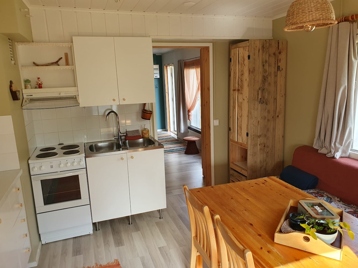 Fully equipped log cottage in Nuorgam, the northernmost village in Finland. Karetörmä has breathtaking views of River Teno. Enjoy the Northern lights show relaxing in the jacuzzi. You have privacy, but the grocery store is just 5 mins away. Enjoy the winter activities in the Arctic Tundra: cross country skiing, snowmobiling, ice fishing, husky- and reindeer sledding. Make trips to Norway and see the Arctic Ocean. In the summer season, you can go fishing, mountain biking, and hiking.