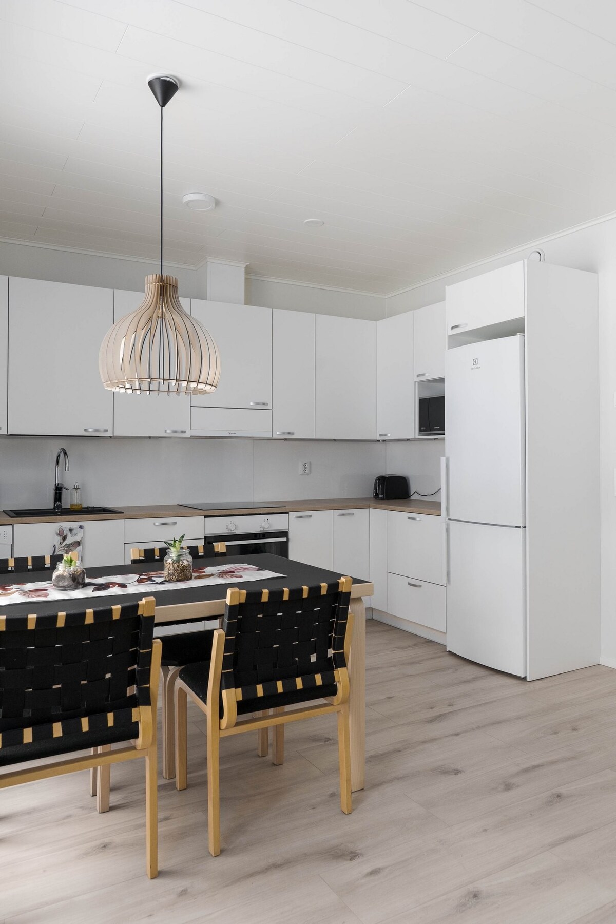 In a great location in the center of Saariselkä, close to all activities and services, a cozy and spacious end apartment of terraced house, 54m2 + loft and upstairs bedroom with own toilet. All the bedrooms overlook the forest. Ski trails and starting points for nature trails / hiking trails are 200 meters away. Cleaning, linen and towels are included in the price.