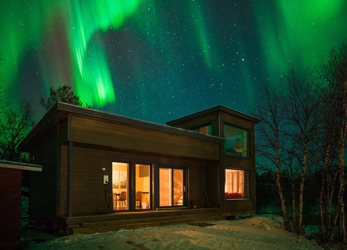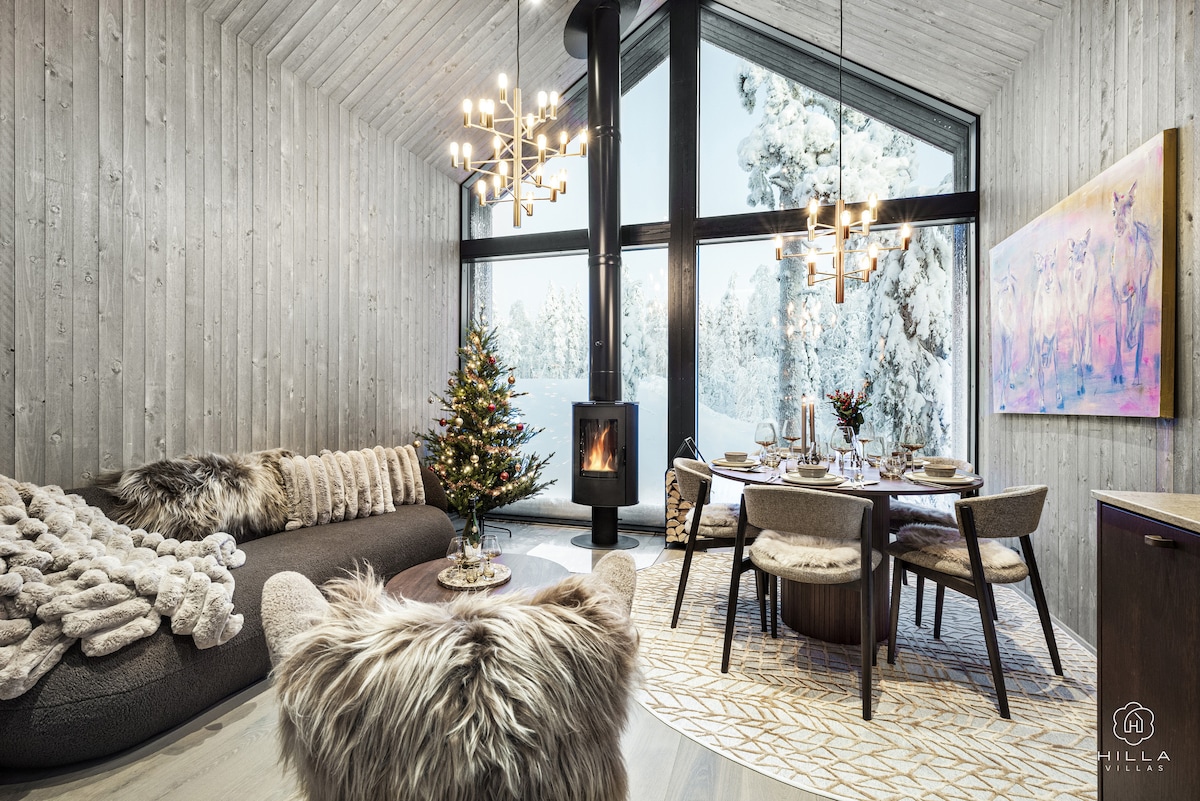 Disconnect from the outside world and relish in the privacy of this new cabin, a special place with towering lappish trees encircling you and a bubbling hot tub to enhance your Lapland experience. Imagine awakening each morning to the view of vibrant greenery or a snow-covered landscape, and then capping your day with a soothing sauna session. Inside, you'll discover a spacious 56 sq. m. area, featuring a Naava green wall, an HDTV, and 100 Mbps Wi-Fi! We also rent a car!