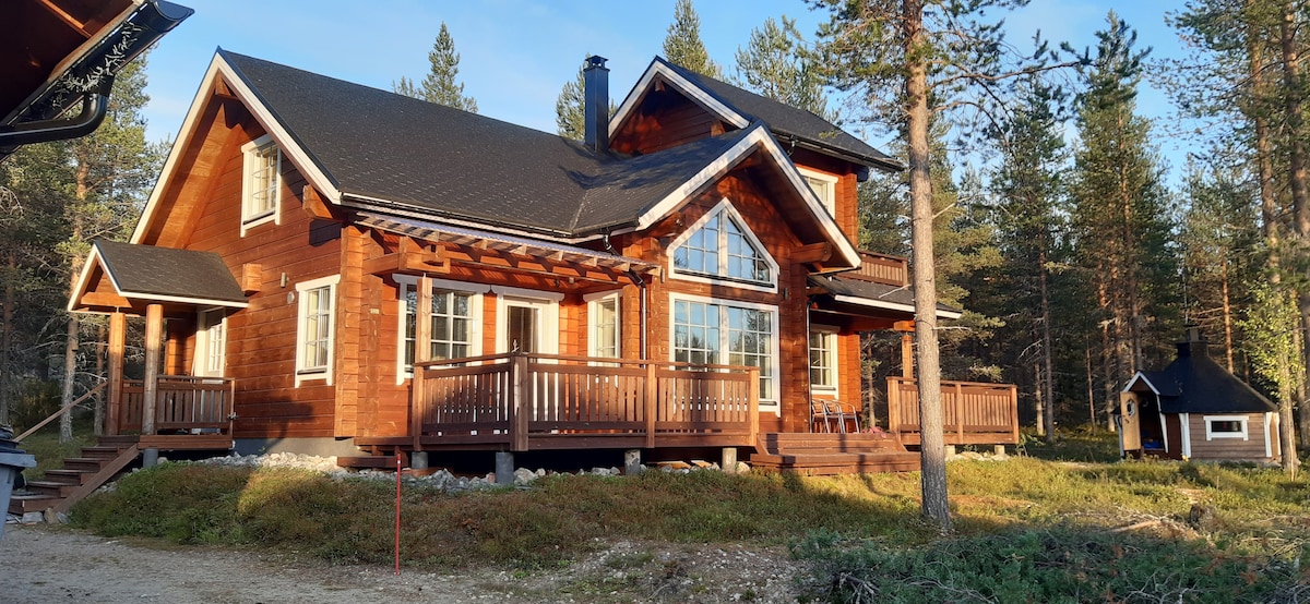 Disconnect from the outside world and relish in the privacy of this new cabin, a special place with towering lappish trees encircling you and a bubbling hot tub to enhance your Lapland experience. Imagine awakening each morning to the view of vibrant greenery or a snow-covered landscape, and then capping your day with a soothing sauna session. Inside, you'll discover a spacious 56 sq. m. area, featuring a Naava green wall, an HDTV, and 100 Mbps Wi-Fi! We also rent a car!