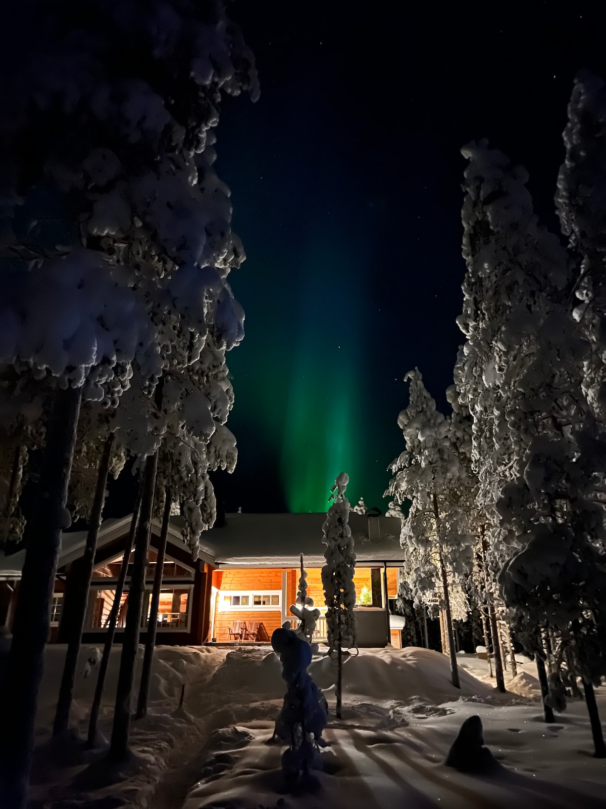 Experience the charm of Lapland in this fully renovated and cozy log house - perfect for families or groups. Luxurious and ideally located, it offers breathtaking arctic views and is in walking distance from the shops, restaurants, activities, and Saariselkä's best aurora-watching spots. It is also easily accessible by plane or train. We are happy to help you with all aspects of your stay! Includes a sauna, two fireplaces, WiFi, Netflix, and a park place.