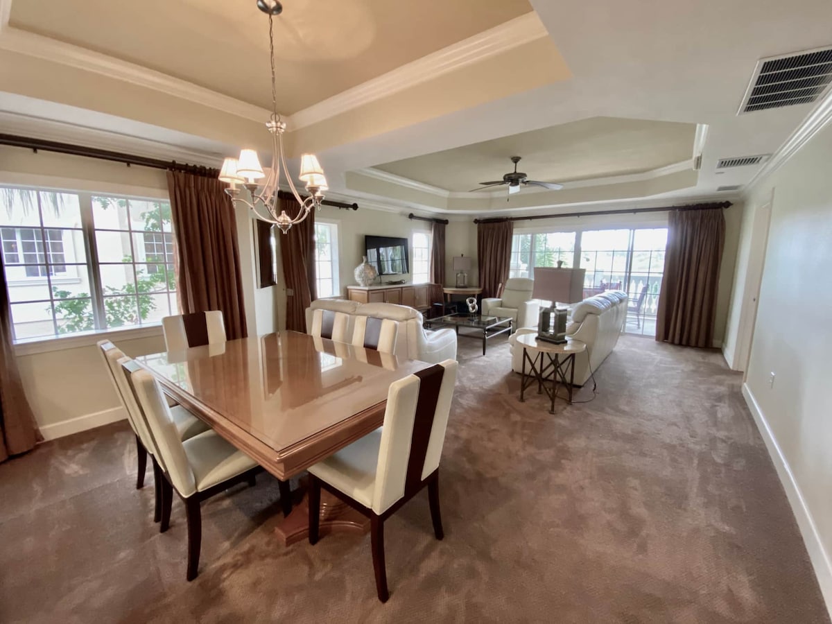 This luxurious condo is located in one of the most exclusive golf communities in western Orlando, just 15 minutes from the Disney parks. The property has a direct view of the golf course, offering you the privacy that you deserve on your family vacation. Fully equipped for 10 guests with state-of-the-art furniture and appliances. The property is a two stories condo with private internal stairway that leads to the main social area and bedrooms.