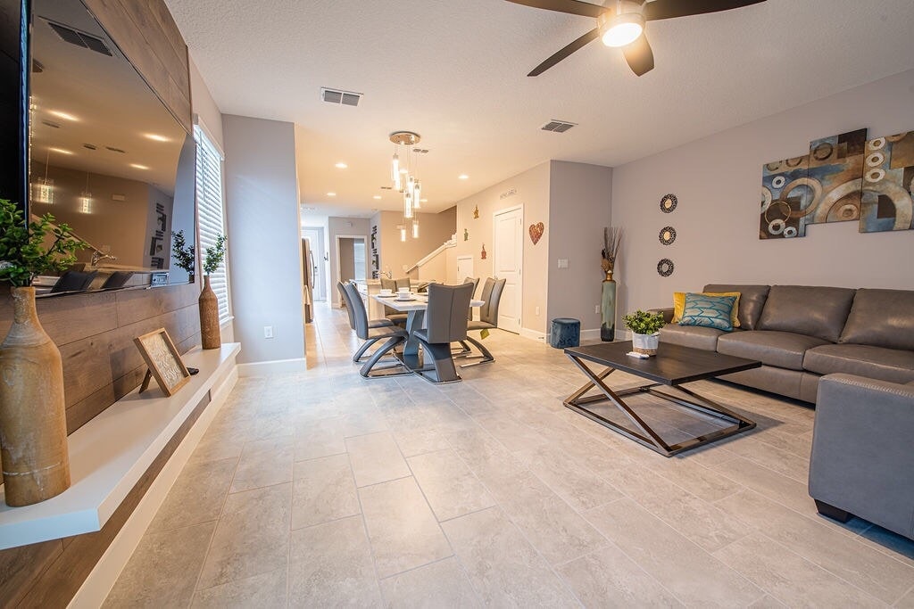 Your magical vacation starts here! Just 15 minutes from Disney World, this beautiful, family-friendly home offers luxury, themed rooms, and fun, perfect for creating unforgettable memories. The home is located in the ChampionsGate area. It has 3 bedrooms, 2.5 bathrooms, modern furniture, and super fast internet. You will have free access to the Enclaves at Festival amenities center which features a large beach-entry pool, kids water park, beach volleyball, mini-golf, restaurant, and gym.