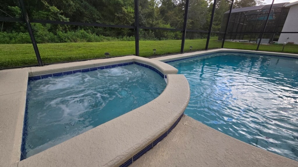 Gorgeous 3 bedroom, 2-bathroom villa set on a 1/4 acre of land, with our own screened, private, heated swimming pool & Jacuzzi, and high speed internet. Situated in a quiet residential community on the sought after Sunridge Woods in Davenport, only 9 miles from Disney. Please note smoking or parties are NOT allowed in house premises. No pool heater available during May through October. **You also MUST be 21 or older to rent this property**