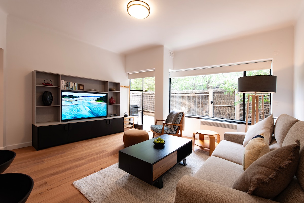 Superb New York style apartment within a heritage listed building. Located amongst the cafes, shops, supermarkets, and restaurants in the 'Paris end' of Fitzroy Street, you're a stones-throw from public transport, Albert Park Lake, and the shores of St Kilda! Secure undercover parking included. Work remotely with a 4k 27inch monitor, ergonomic office chair and a fast NBN internet connection with unlimited data. Easy airport transfer via Skybus. Well appointed and perfect location.