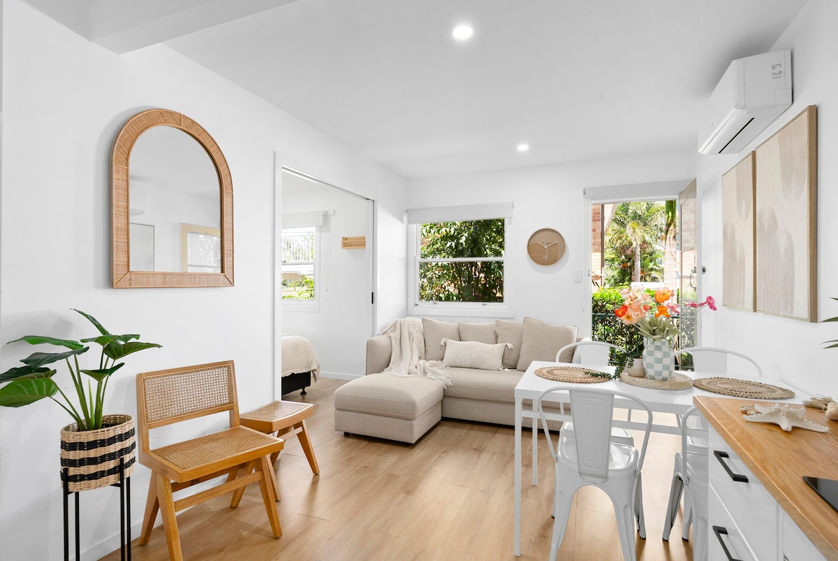 Beachside 2-bedroom apartment in Rainbow Bay, Gold Coast – just 100m from the beach! Walk to Snapper Rocks, Duranbah Beach, Coolangatta shops, restaurants, and cafes. Enjoy ocean glimpses, world-class surf, and easy access to Jack Evans Boat Harbour (5 mins) for fishing, snorkeling, and watersports. No car needed – everything is walking distance, including Tweed River, Greenmount, and markets. Perfect for surfers, couples, and families seeking a cozy coastal getaway.