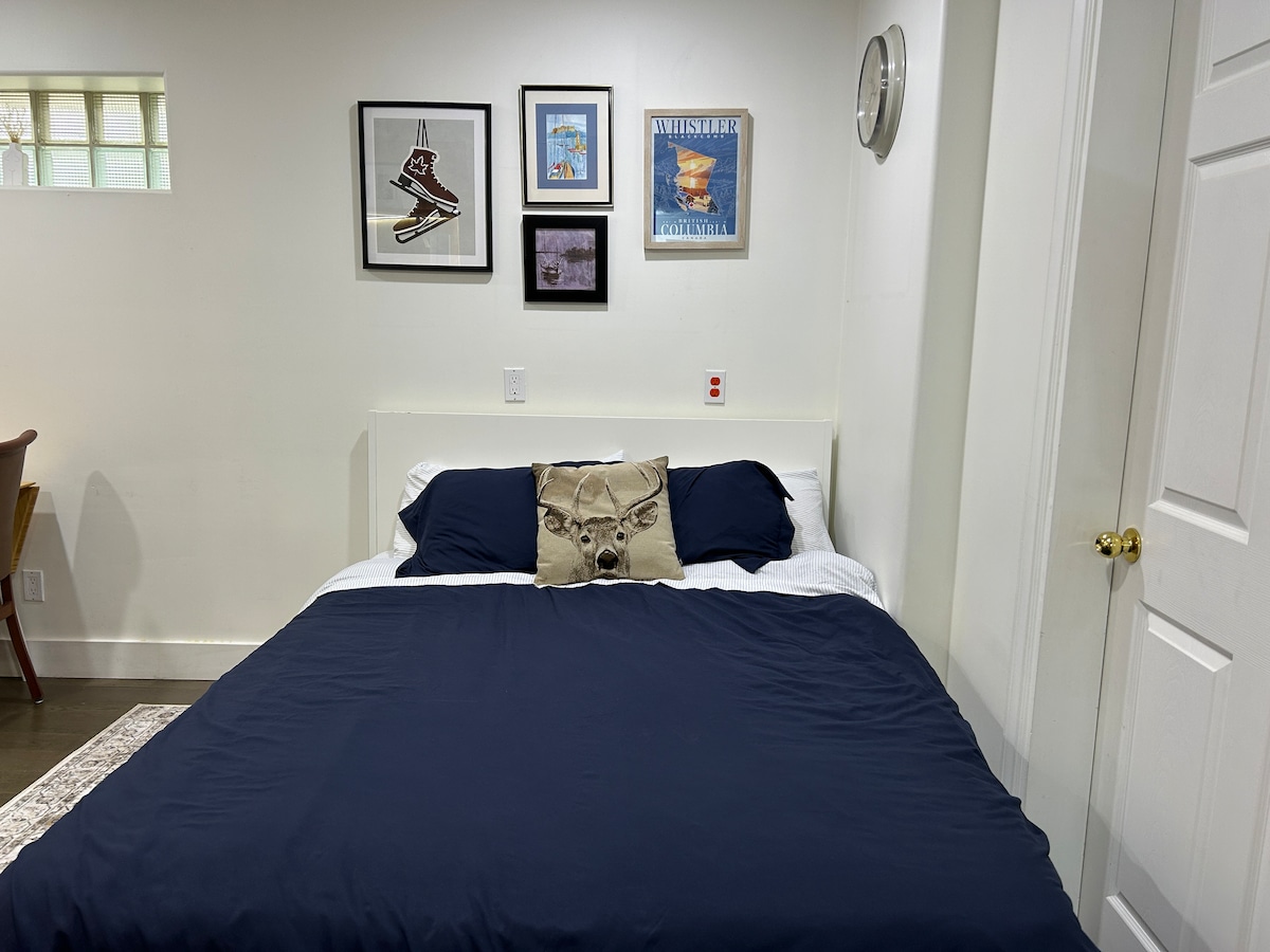 Enjoy a clean, bright, and relaxing suite in the quiet Dunbar neighbourhood. Above-ground basement unit features private entrance, 1 large bedroom (queen bed, closet), 1 small bedroom/den (twin bed, no closet), and a full bathroom with washer/dryer. Fully-equipped kitchen includes high-end appliances for a comfortable stay. Additional amenities: high-speed internet, heating, French tilt/turn windows, free street parking, dining table for 4.