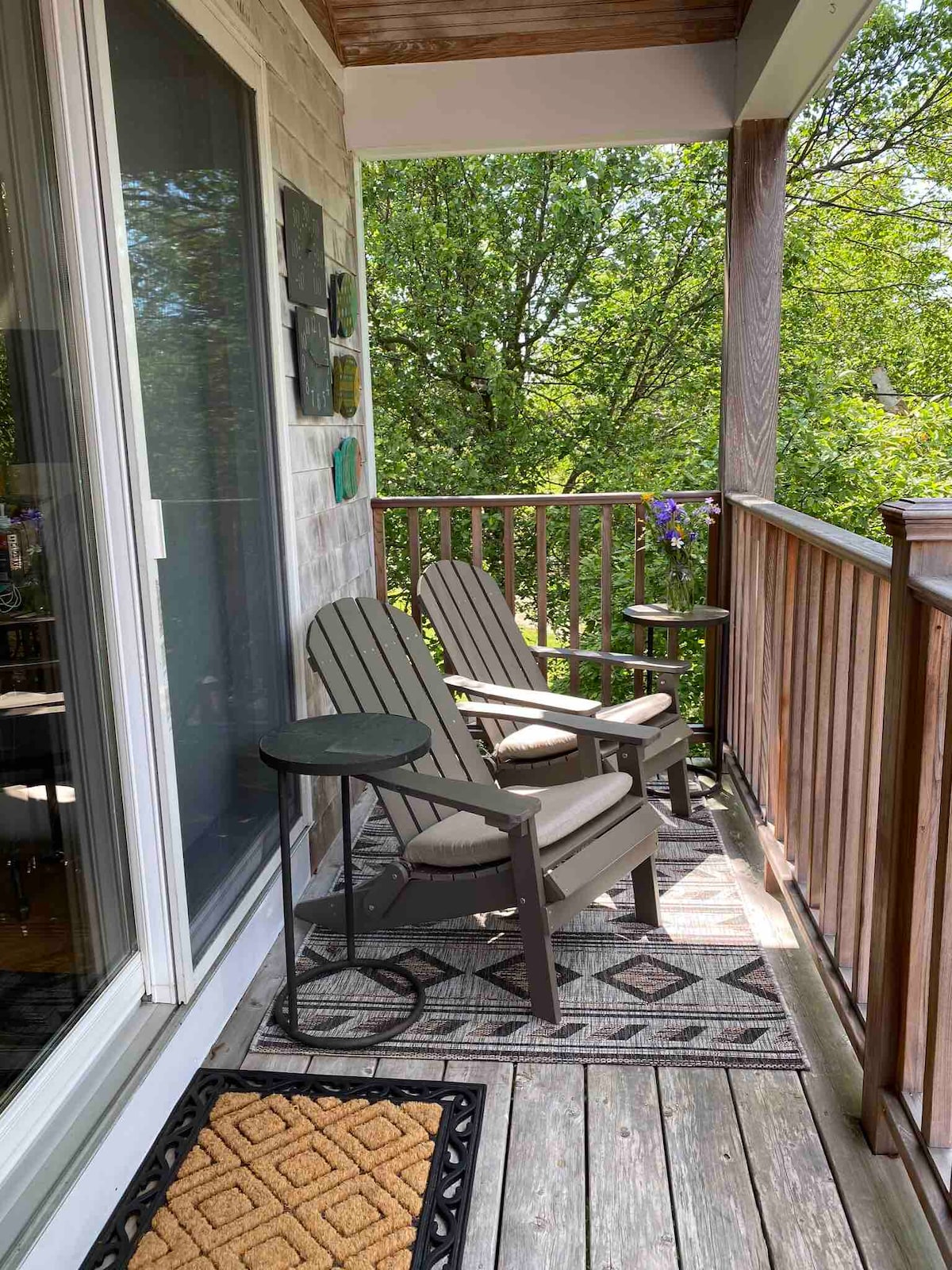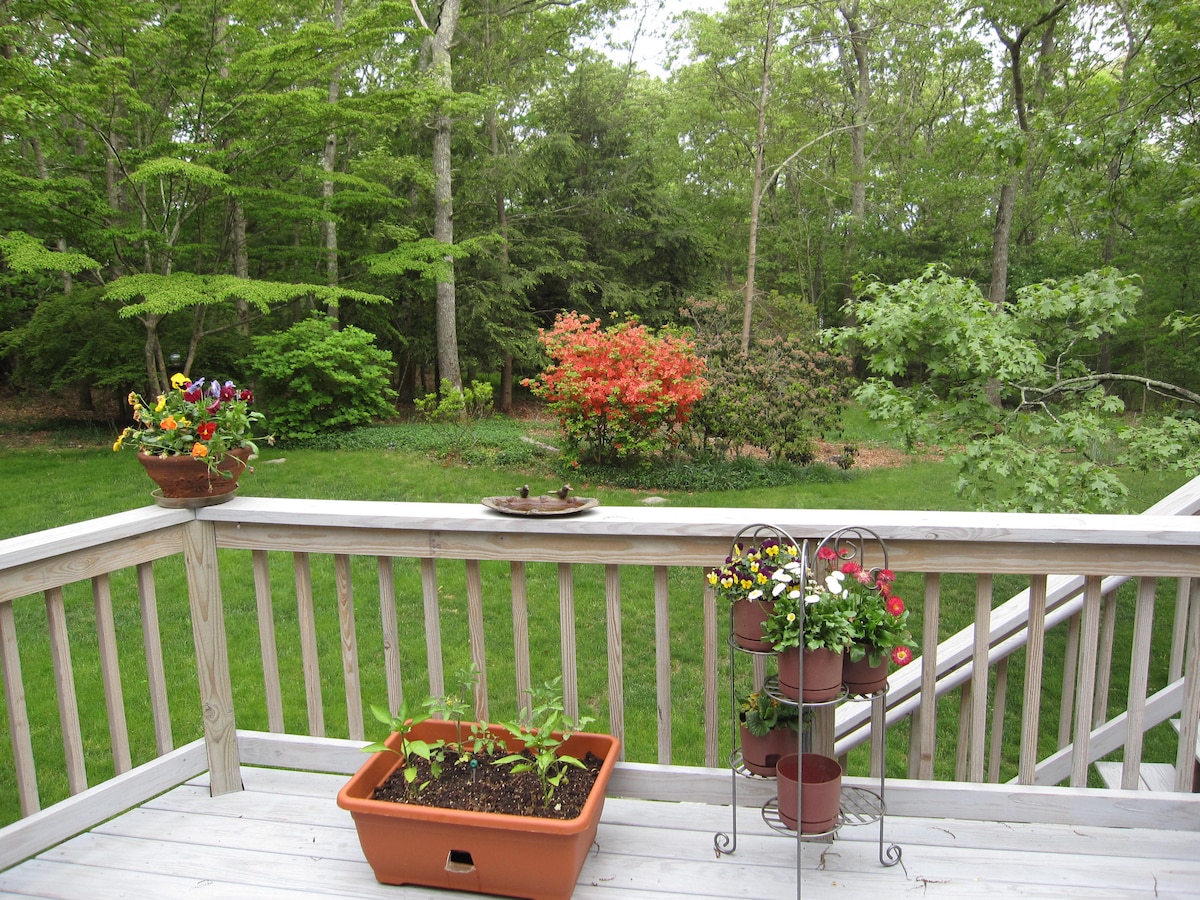 This peaceful and centrally-located place is a sunny and spacious modern one-bedroom cottage located in the heart of historic Wakefield. We're minutes from many RI beaches. Stroll downhill to a lovely park on Saugatucket River, then cross the charming footbridge into town. Here you'll find a variety of restaurants, cafes, and ice cream, plus excellent community theater, yoga, and interesting shops. Relax inside this light-filled home or sit out on the deck overlooking the gardens and town.