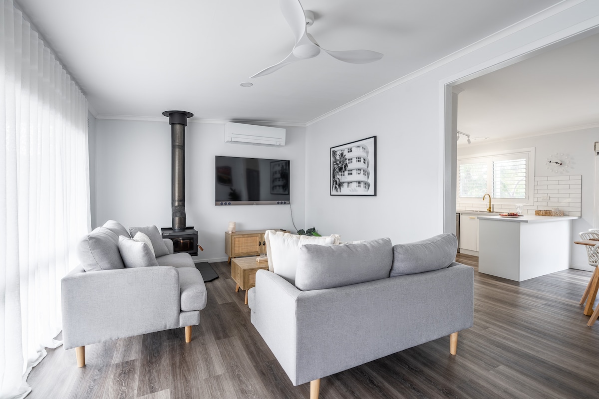 Live like a local at Seabirds Landing, a picture perfect 5 bedroom modern oasis, decorated with a coastal vintage twist and equipped with all amenities you need for a dreamy holiday escape. Nestled in an idyllic location amongst the hills of Old Ocean Grove and within easy walking distance to town, the beach and a supermarket complex. Kickback and enjoy the quiet life, turn the record player on, make yourself a platter and bask in the sunshine on the expansive timber deck.