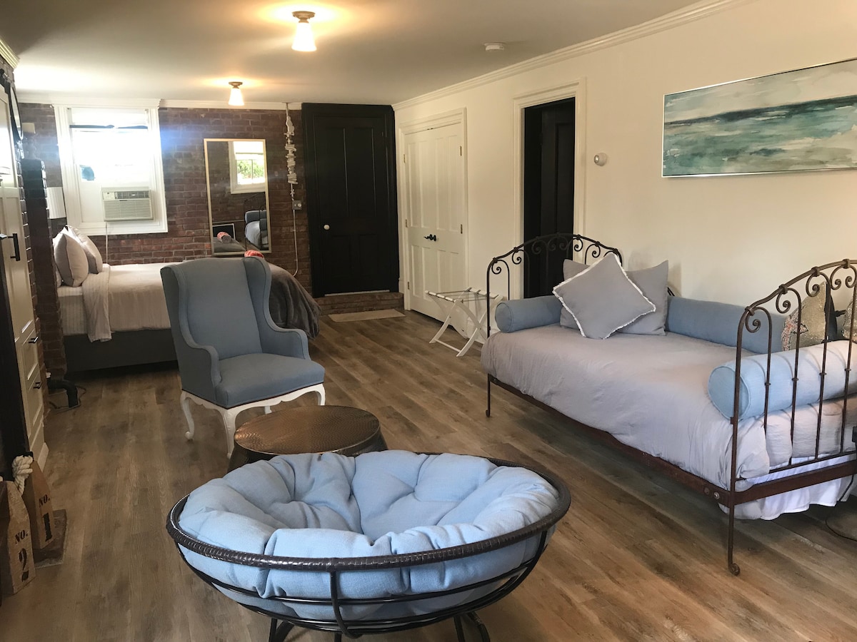 Luxurious studio apartment with fully equipped kitchenette, spacious bathroom with large claw foot tub, and luscious bedding. The studio is the entire English basement of my home overlooking the bay, with radiant heated floors, located one mile from the ocean beaches. You have your private entrance and have the studio to yourself. I live upstairs. Bikes and kayaks available. Dogs are welcome (no more than 2 medium-sized dogs, and no other pets, sorry).