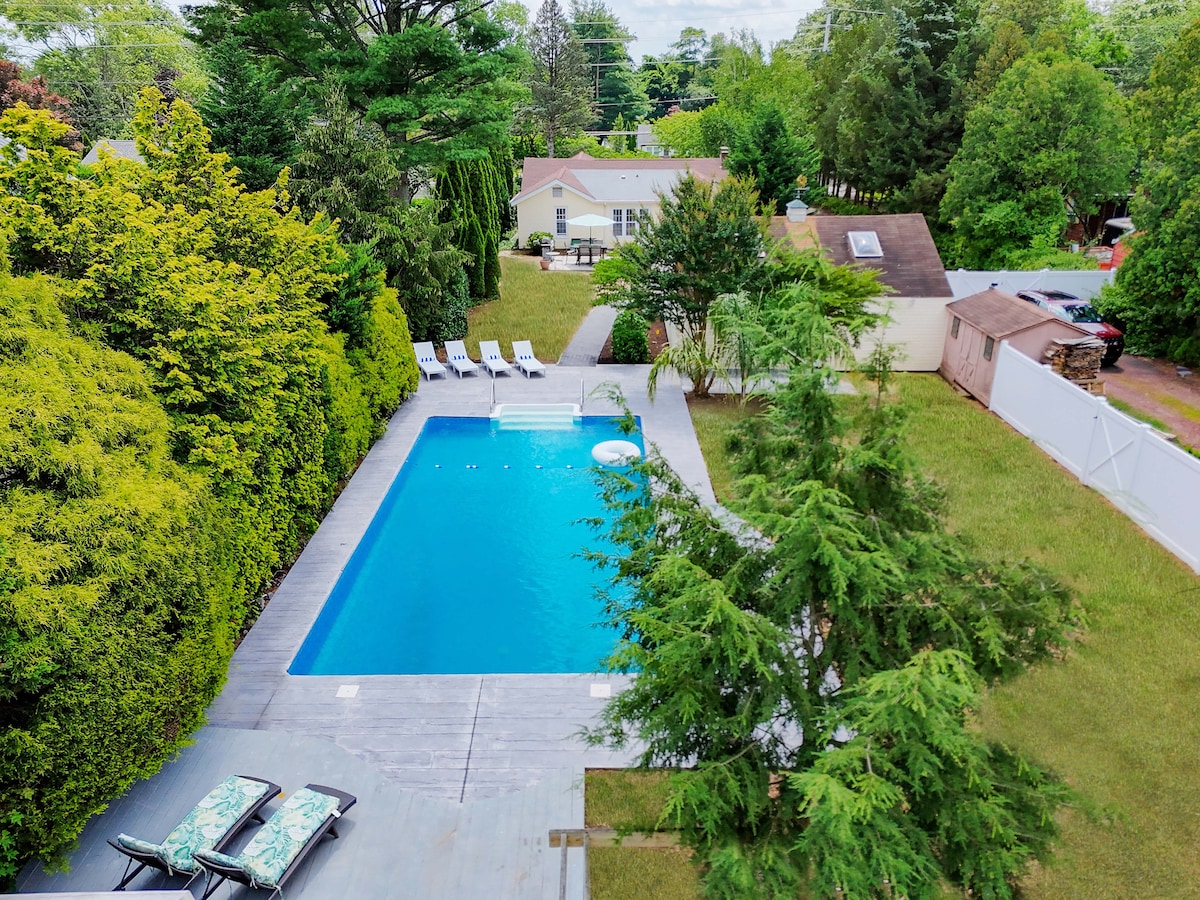 4 bedrooms, entire house newly renovated. Kitchen w/center island and seating. Patio, gas grill, outdoor dining table for 8. Heated 10’x20’x4’ saltwater pool w/lighting, pool house, small ping pong table, beach chairs/wagon. Walk to park, stores, restaurants, deli, ice cream, train, and church. About 6 blocks to beach- a 15-20 min walk or take shuttle (in-season) door-to-beach. 8 beach badges included. Sheets and towels available for use (see notes). No parties please. Responsible adults on